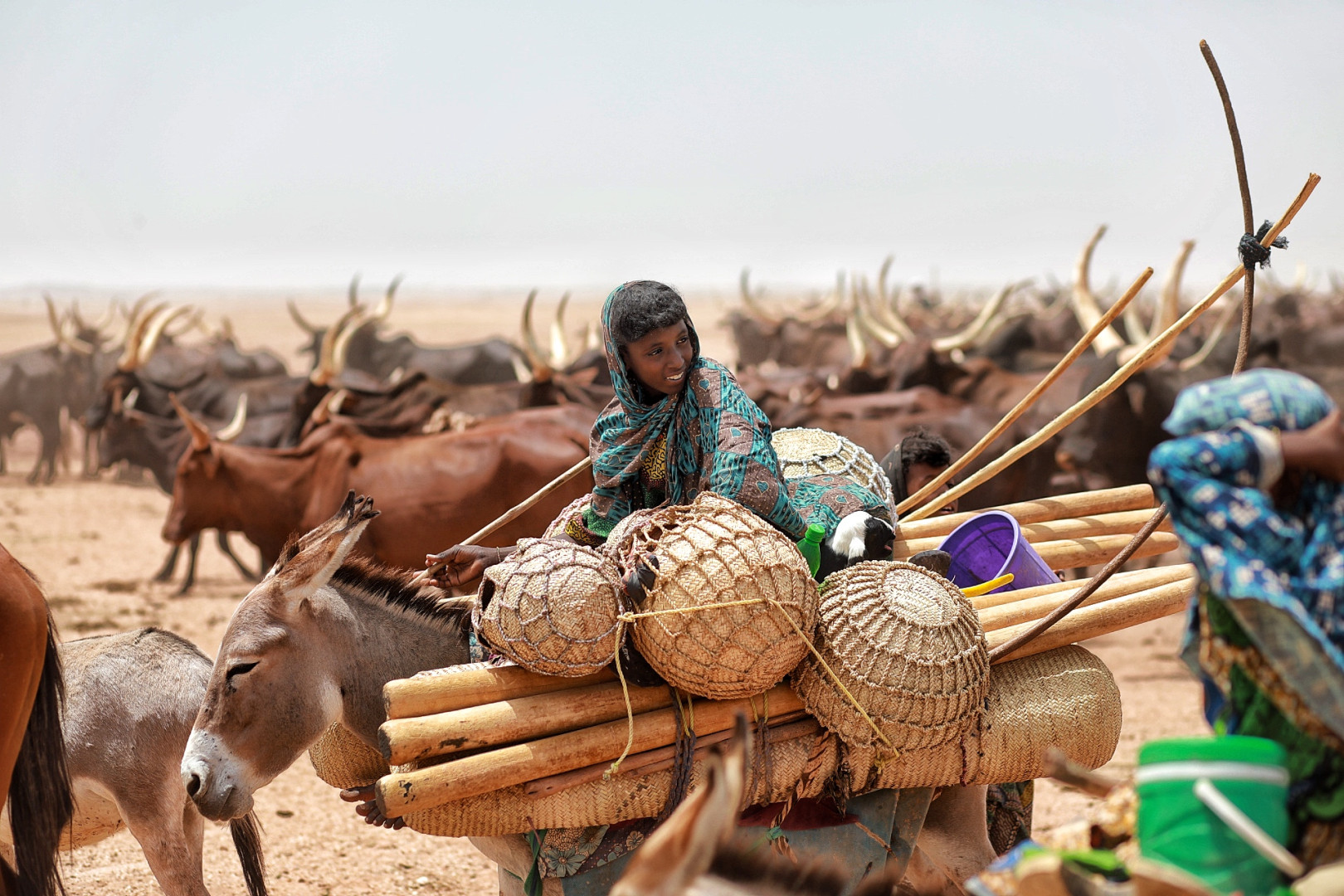 В то же время на другом краю света — узкой полосе региона Сахель, зажатой между пустыней Сахарой с севера и плодородными суданскими землями с юга, — управляются со своими огромными стадами длиннорогих коров зебу искусные кочевники водаабе. Этническая группа фулани (народа Западной Африки) живет по канонам своих предков и свято чтит традиции и табу. Именно в конце сентября, в кульминации кочевья, караваны водаабе стекаются к соляным озерам и приводят свой скот на «лечение солью», чтобы животные могли пополнить запасы соли в организме на год вперед. Редкое ежегодное воссоединение с соседними кланами — широкий праздник, который отмечается с размахом, в том числе со знаменитым мужским конкурсом красоты Геревол.