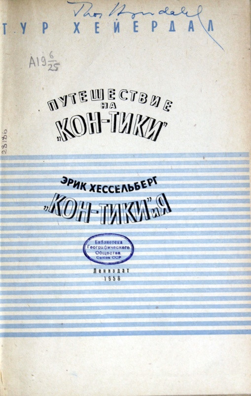 There are a couple of editions signed by Thor Heyerdahl in the Scholarly Library of the Russian Geographical Society, which he left during his visits to Leningrad.