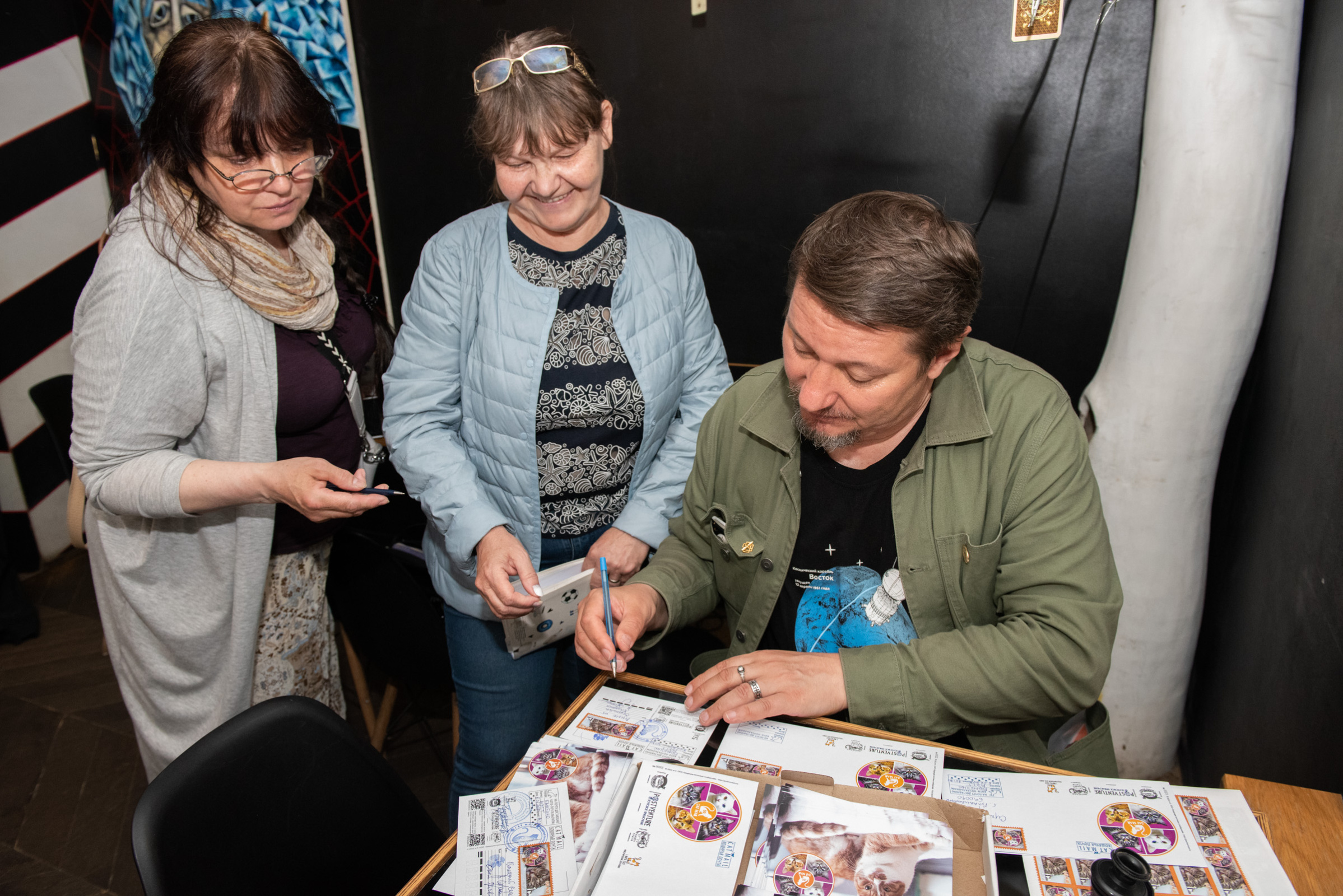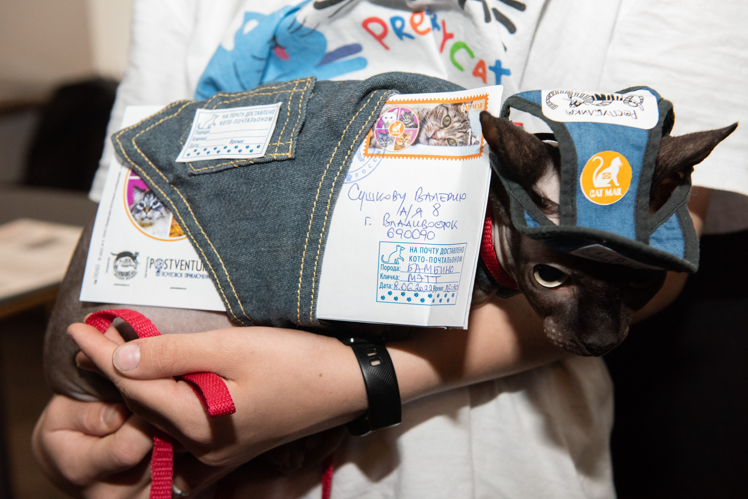 На Церемонии спецгашения КОШАЧЬЕЙ ПОЧТЫ/СAT MAIL присутствовали автор проекта исследователь-путешественник Валерий Сушков, представители Центрального музея связи имени А.С. Попова, МУЗЕЯ КОШКИ, Ольга Титович креативный директор КотоКафе «Республика кошек и котов» и кот-почтальон породы "Бамбино" по имени «Мэтт», который произвел почтовую доставку до почтового отделения «Почта России» с сумкой на ремне КОШАЧЬЯ ПОЧТА/СAT MAIL, где находилась первая почтовая корреспонденция.