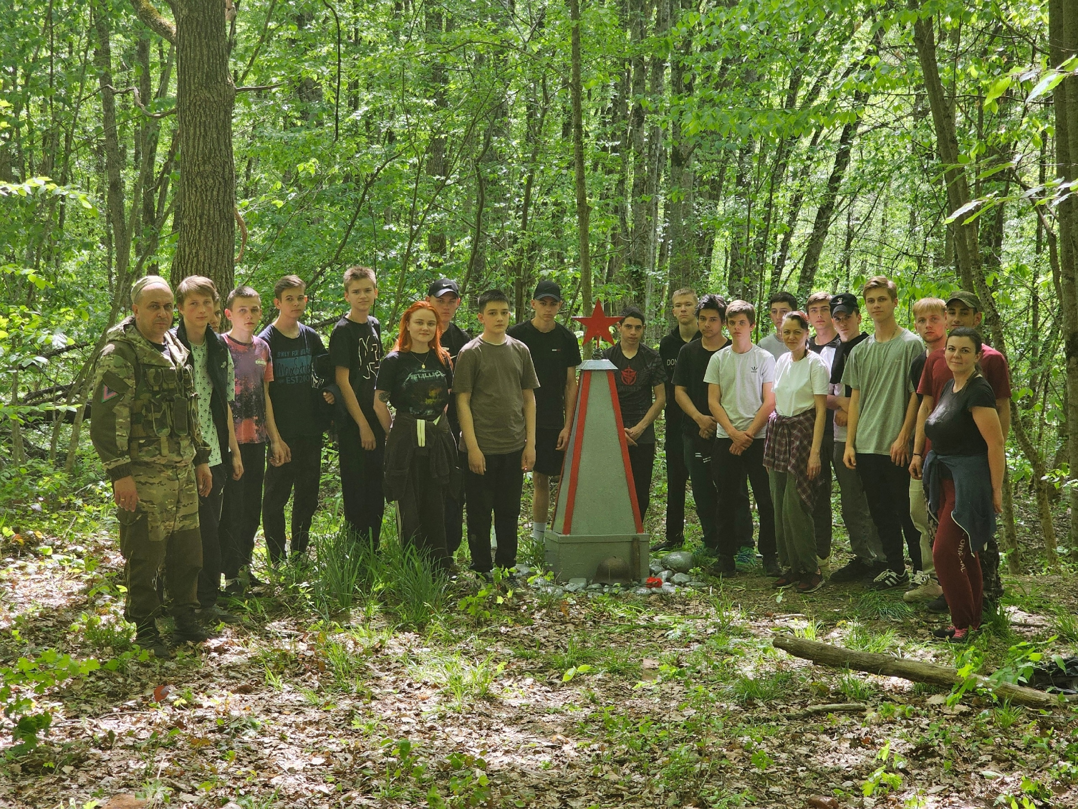 Активисты Молодежного клуба Русского географического общества «ЭКОСфера» из Апшеронского техникума автомобильного транспорта и сервиса отреставрировали памятник воинам Великой Отечественной войны. Они привели в порядок место захоронения советских солдат и партизан в окрестностях Апшеронска.