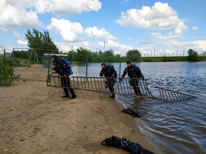 Параллельно аквалангисты РГО занялись очисткой дна реки, откуда достали внушительного размера металлическую ограду.