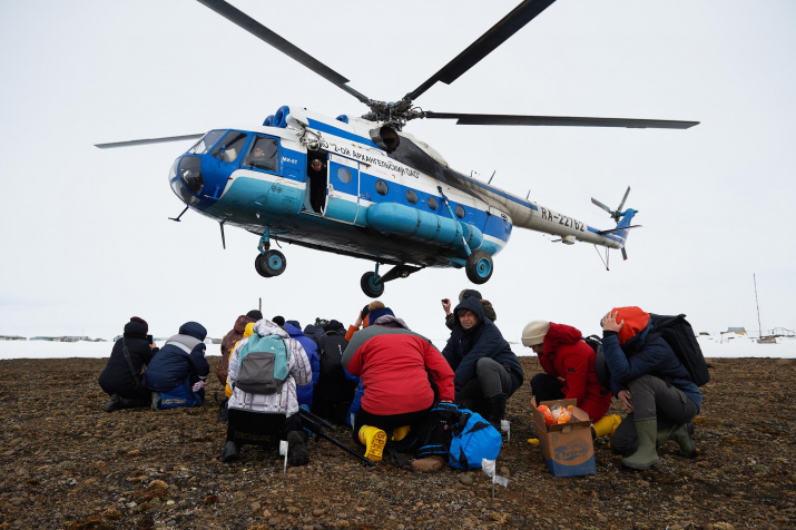 Остров Хейса — самая северная точка маршрута экспедиции Арктического плавучего университета 2021. 80 градусов 34 минуты 50 секунд северной широты. Вертолёт приземляется у самой северной метеостанции России — станции имени Эрнста Кренкеля.