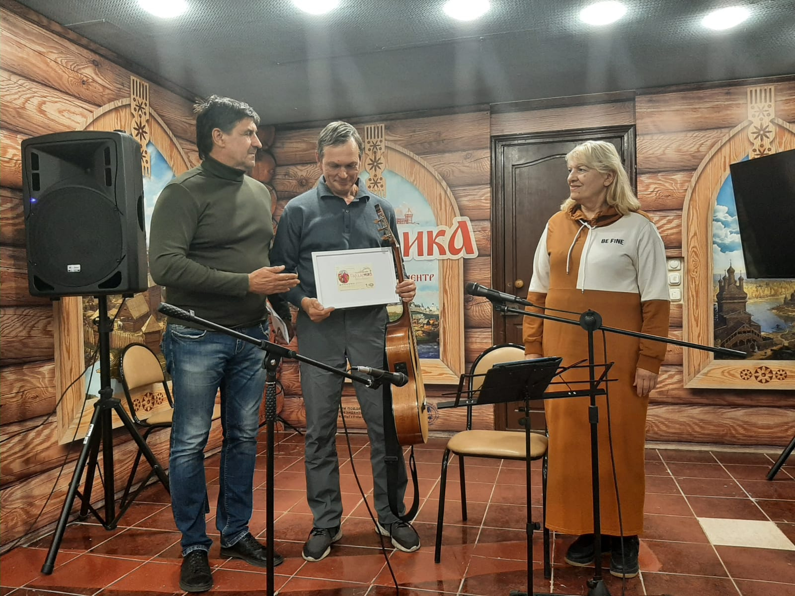 Евгения Пискунова, руководитель этнокультурного центра «Гардарика», представила главного гостя вечера – Андрея Ширшикова. Известный пензенский бард, автор-исполнитель, путешественник, ученый и изобретатель, Андрей Ширшиков порадовал собравшихся своей авторской программой. Его творчество, наполненное лирическими песнями о любви и дружбе, а также задорными походными композициями, находит отклик в сердцах слушателей. Как отметил сам бард, именно в путешествиях рождаются самые искренние и запоминающиеся строки. В знак признания его вклада в популяризацию туризма и географических знаний, Евгения Пискунова вручила Андрею Ширшикову памятную почтовую карточку, выпущенную в честь 180-летия Русского географического общества.