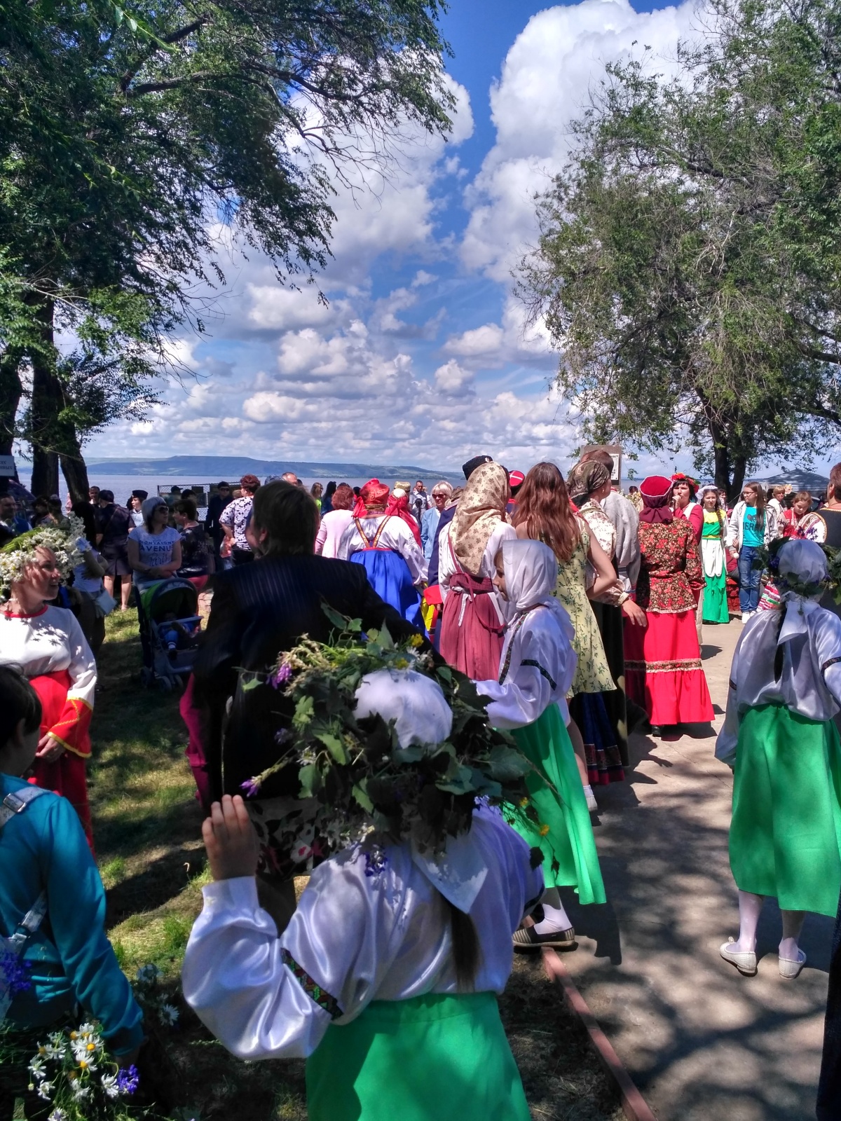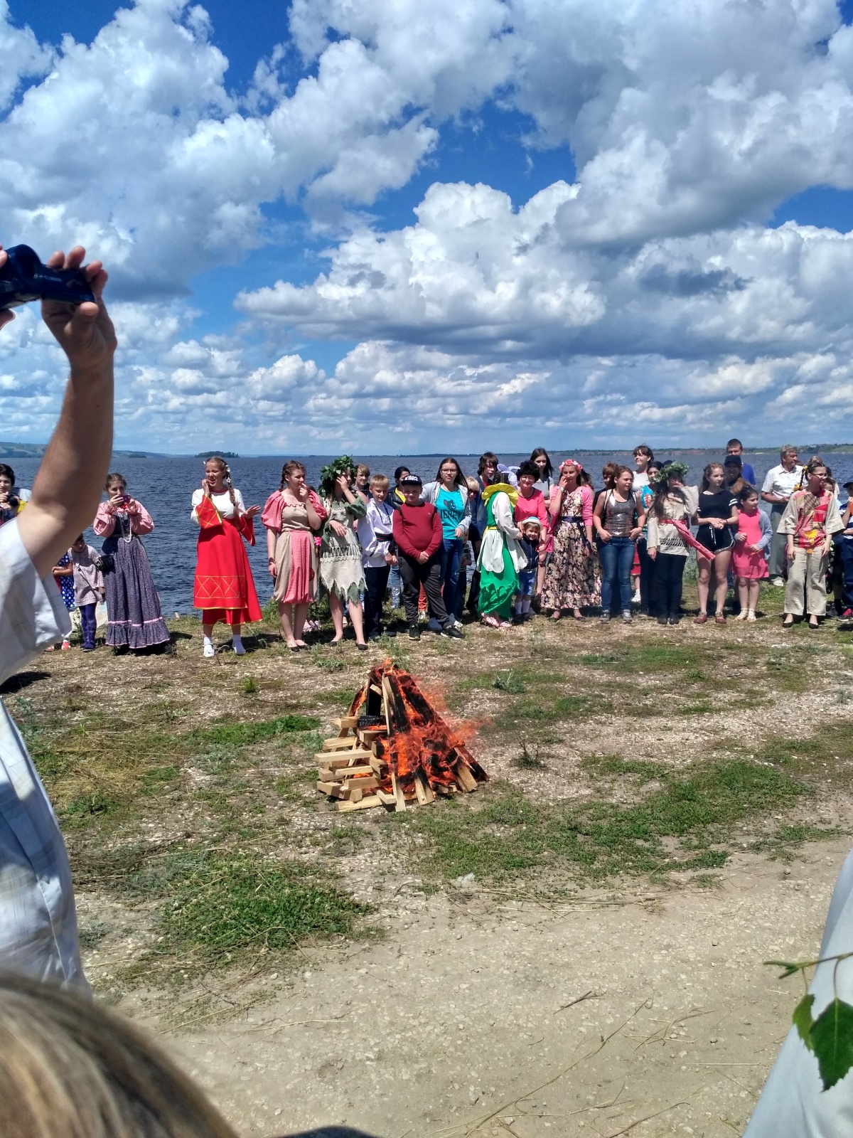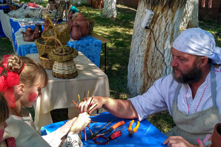 Помимо обрядов и старинных песен частью фестиваля стали интерактивные площадки (хотя для праздника, что проходит средь берез, на берегу Волги, слово «интерактив» звучит чужеродно): на одной из площадок учат плести венки — здесь уже приготовлены охапки полевых цветов; на другой — рассказывают о целебных настоях, угощают чаями; в городе мастеров можно было посидеть за гончарным кругом или изготовить берестяную берегиню и др. А ближе к обеду — старинная русская забава — прыжки через купальский костер. Конечно, жаль, что не вечером, не столь эффектно, но желающих предостаточно — по преданию купальский огонь очищает от всех бед и невзгод. Вообщем, все участники нашей разновозрастной группы могли найти занятие по интересам и по душе.