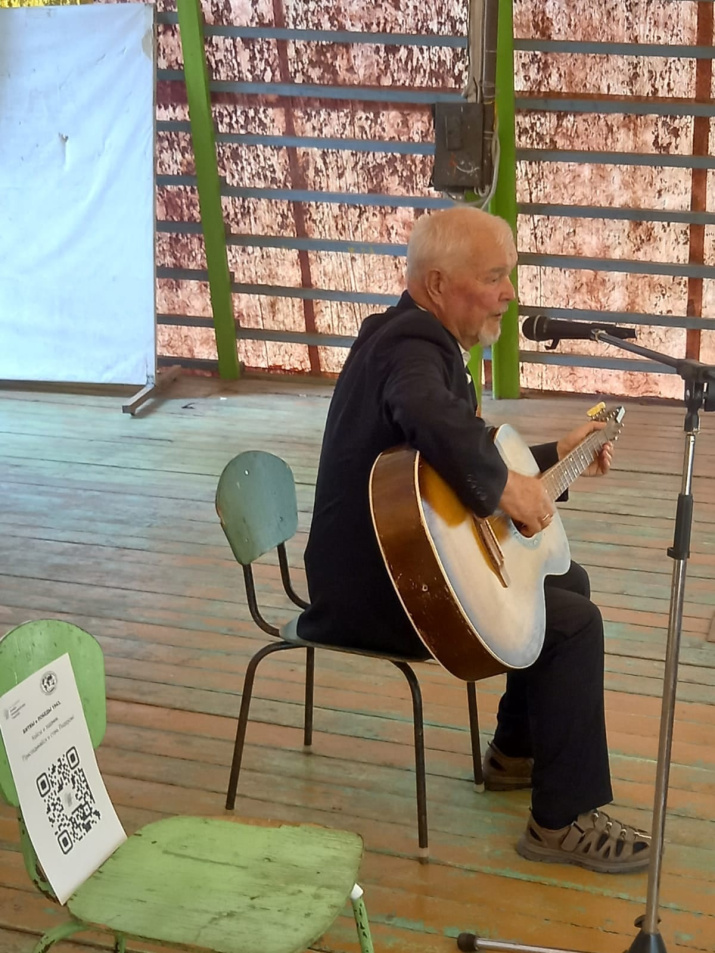 Будем помнить о событиях тех далеких времен! Именно такой цели посвящен проект. Встреча не напоминала лекцию, она была живой и впечатляющей: ничто не привлекает так внимание детей, как истории героев, рассказанные их потомками, как военные песни, исполненные под гитару. Николай Борисович рассказал об истории своей семьи, о том, когда и как погиб его отец под Сталинградом. Он исполнил военные песни под гитару. А вот знаменитую "Катюшу" пел весь зал!