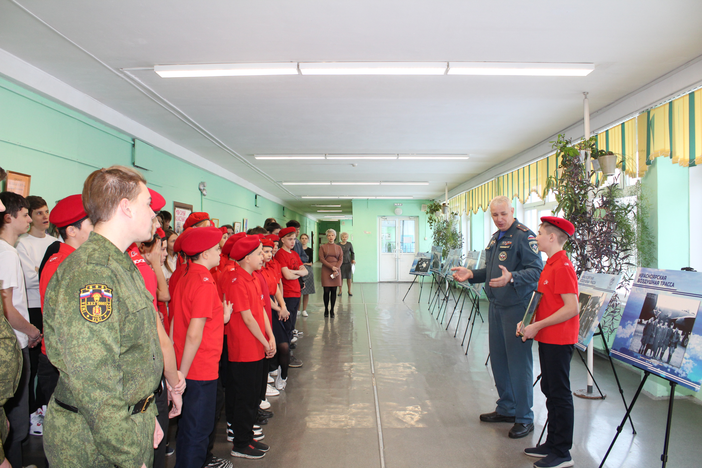Директор гимназии Наталья Шугалей рассказала о важности сохранения исторического наследия России и значимости тех событий, которые помогали приблизить Великую Победу. С кратким обзором выставки выступил помощник начальника Сибирской пожарно-спасательной академии ГПС МЧС России Александр Чепелев. Также школьникам прочитали лекцию об истории Алсиба и показали документальный фильм из кинофонда Русского географического общества, рассказывающий о создании трассы.