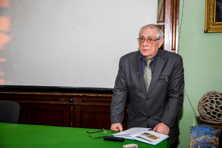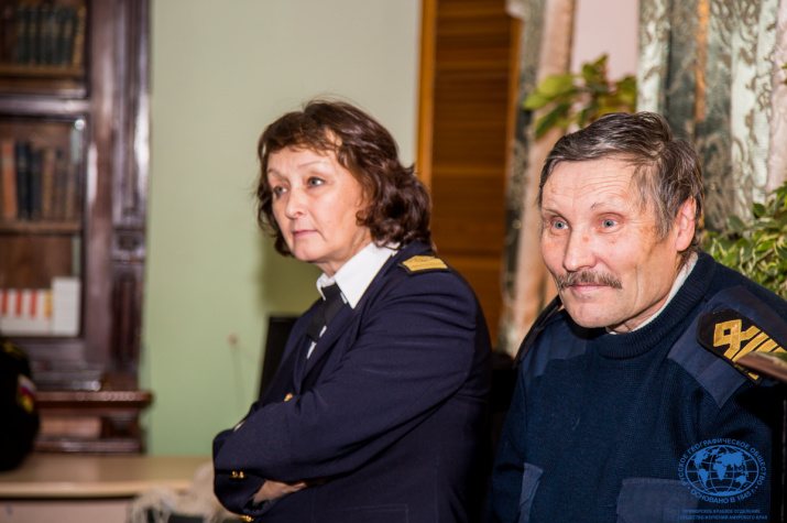 После основных докладчиков к ребятам обратился Владимир Михайлович Тыцких, исполнительный директор ПКО РГО – ОИАК. Он сделал акцент на совместной работе Общества изучения Амурского края и Гидрографической службы ТОФ, уделил особое внимание памятному знаку «Гидрографам за открытия на Крайнем Востоке России», прочитал авторское стихотворение, посвященное гидрографам.