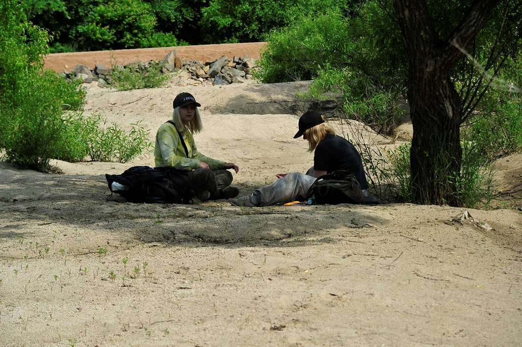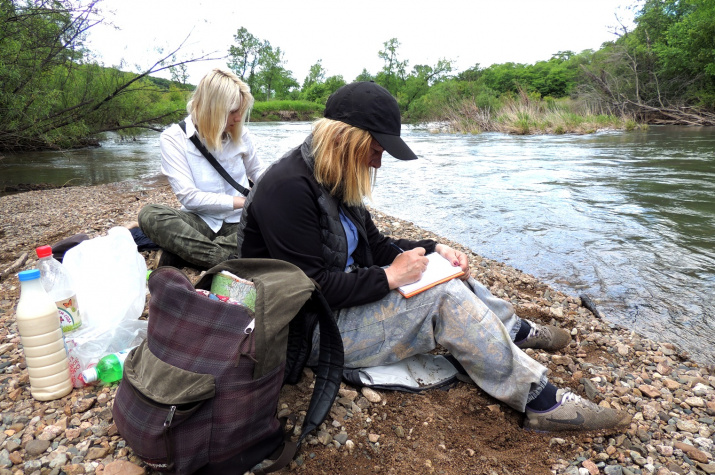 Было запланировано обследовать участки, начиная с окрестностей с. Дворянка и до устьевой части реки, перемещаясь по воде на лодках, а по берегам – пешком и на машинах. От привлечения лодок практически сразу пришлось отказаться, хотя уровень воды в реке после последних дождей был выше обычного. Пытаясь пройти небольшой участок реки вниз от с. Комиссарово на моторной лодке, мы несколько раз задевали мотором дно и успели немного «повисеть» на подводных корягах. В верхнем и среднем течении также было невозможно пробиться к берегам на машине, в связи с отсутствием дорог и присутствием многочисленных стариц, затонов и проток. Поэтому основным «видом транспорта» были наши ноги. «Порадовали» своим обилием комары. Их было весьма много и на всякие глупости типа репеллентов они не обращали никакого внимания.