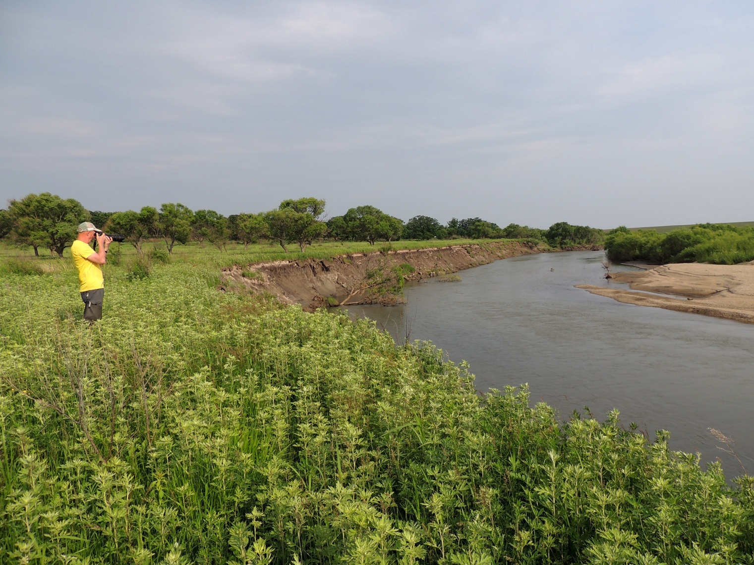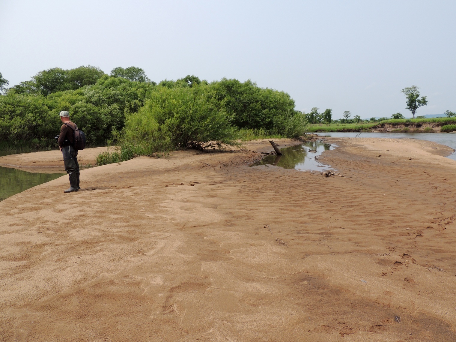 Владимир Фёдорович Носков – рыбинспектор из с. Майское помог определиться с наиболее перспективными участками в нижней части реки, включая карьеры, и закинул нас на своём УАЗике как можно ближе к основным речным песчаным косам.