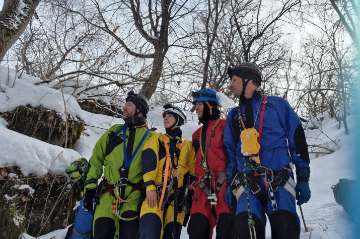 - Планы были обширные: и спортивное прохождение известных пещер, и поиск новых. Погода внесла в свои коррективы. Подъезды в этот район непростые: хотя хутор Тегинь и находится в Краснодарском крае, но более-менее приемлемая для автомобилей дорога ведет через станицу Преградная в Карачаево-Черкесии. После подъема на перевал высотой около 1400 метров оказалось, что снега на северном склоне много, передвижение по району было затруднительным. Решили ограничиться посещением вертикальной пещеры Весенняя, имеющей глубину около 80 метров, - рассказал руководитель комиссии спелеологии Краснодарского регионального отделения РГО Андрей Остапенко.