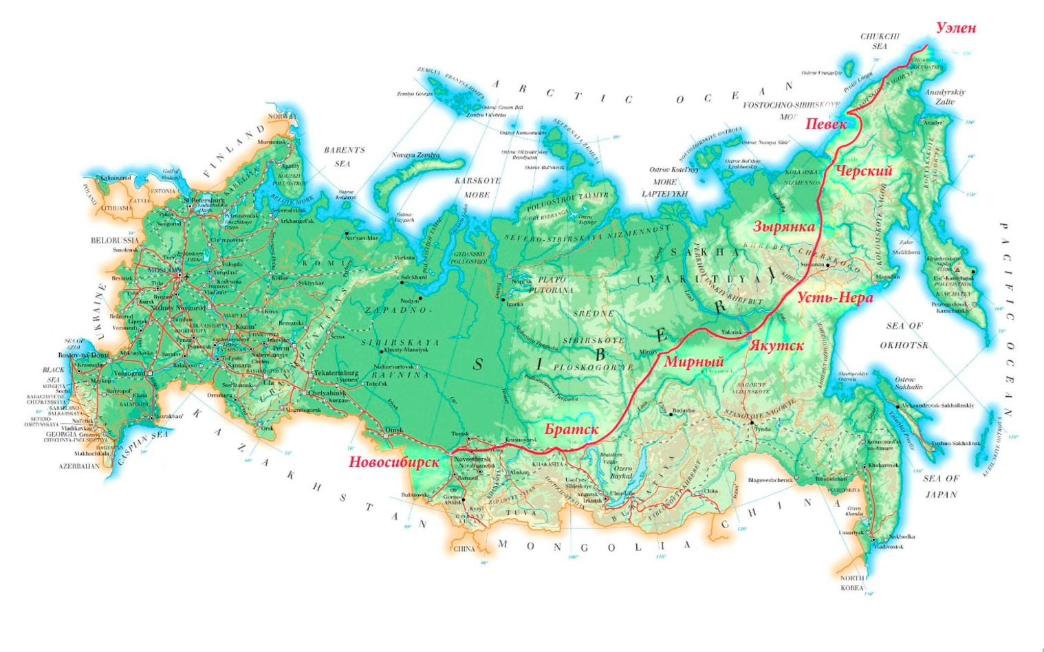 Общая протяжённость маршрута – 4000 километров по автодорогам общего пользования, 4000 километров по автозимникам Якутии и Чукотки и 1000 километров бездорожья.
