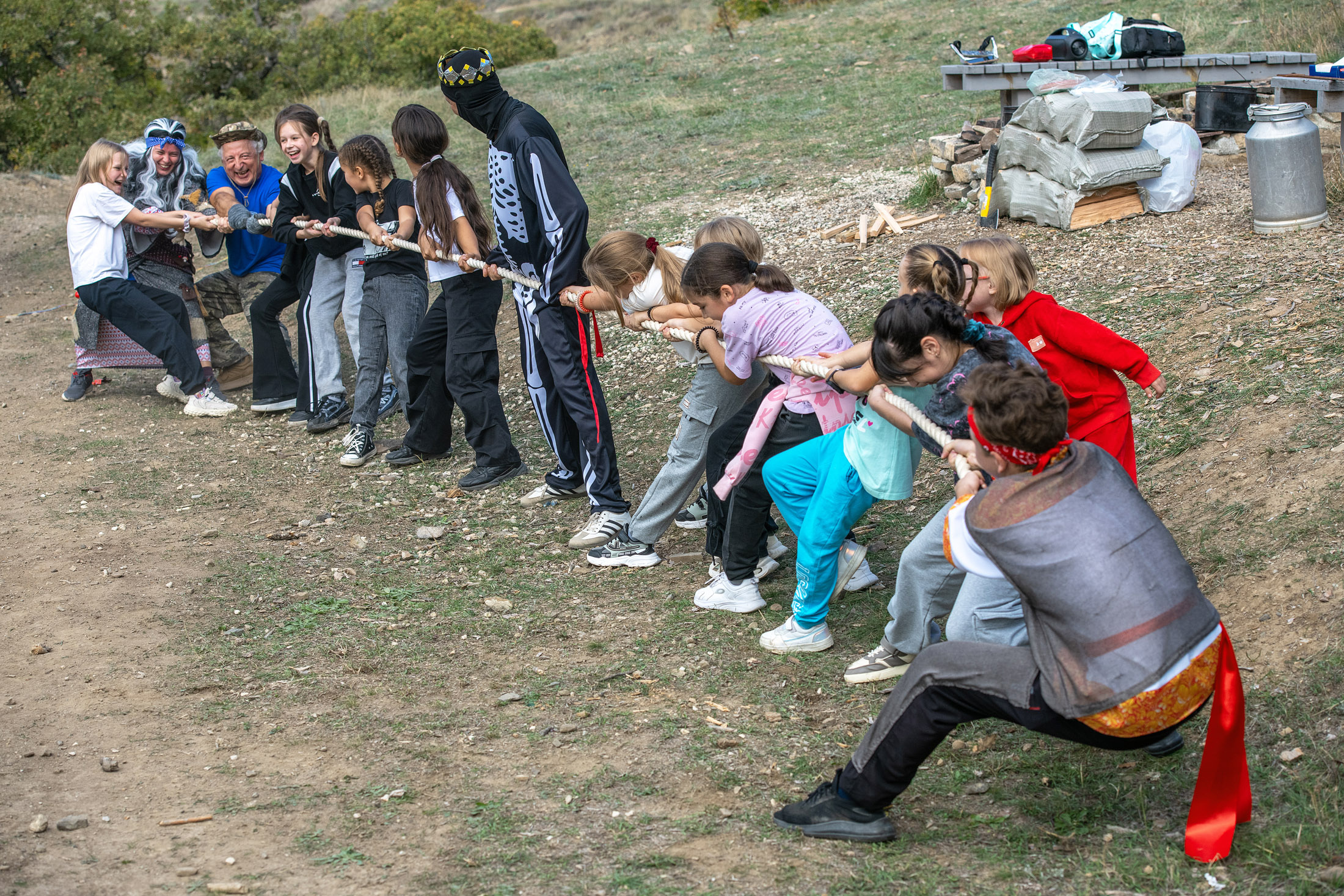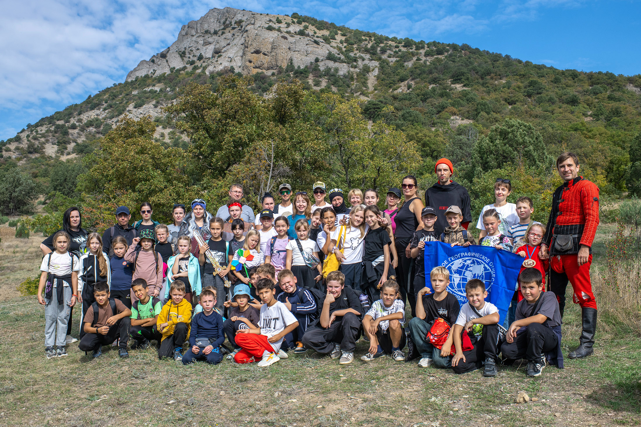 Программа мероприятия включала пеший поход по склону горы Ай-Георгий в сопровождении профессиональных спасателей и Бабы-Яги, игры, поиск клада и пикник у костра. Коварный Кощей Бессмертный разбросал по горе все лепестки волшебного цветка, и детям предстояло их собрать. Они поднялись по тропе, полюбовались соснами и можжевельниками, умылись целебной водой из источника в купели, сразились с Алёшей Поповичем и средневековым рыцарем. Настоящим испытанием стал переход через овраг, который ребята с честью преодолели, почувствовав себя настоящими героями.