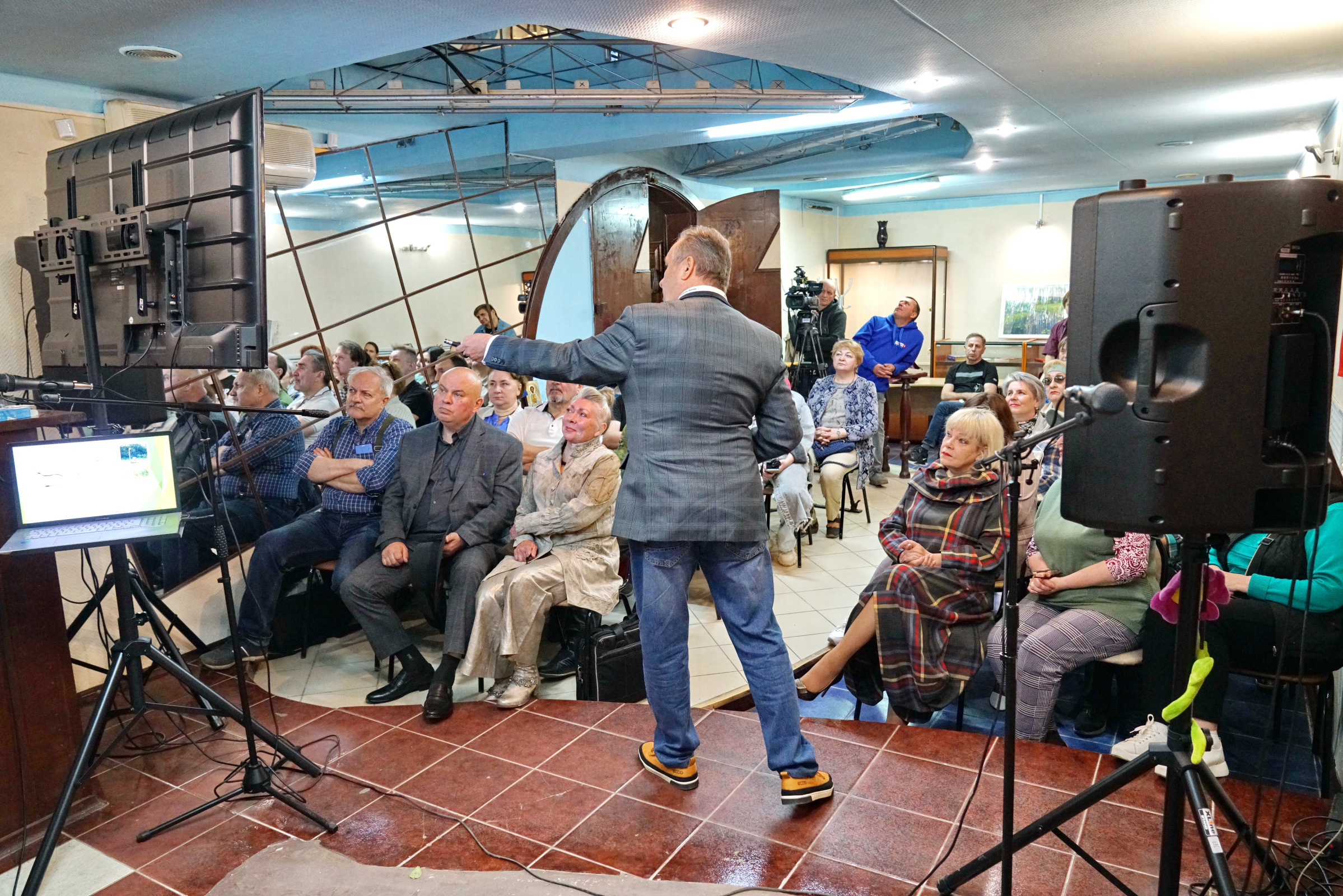 Гости увидели и услышали то, что обычно остаётся вне рассказа о путешествиях. А именно, спикер изложил и трудности маршрута от Красноярска до Республики Тыва, где основной акцент сделал на интереснейших местах Хакасии. Также показал на экране уголки таёжного края, где проживают староверы и старообрядцы. Интересные тайны хранят в себе кромлехи – сооружения из валунов в степях. И как люди относятся к своим этническим традициям, сохраняя древнюю веру через изготовление шаманских атрибутов, амулетов и т.п. Не случайно тема лекции именовалась «Таинственная Хакасия».
