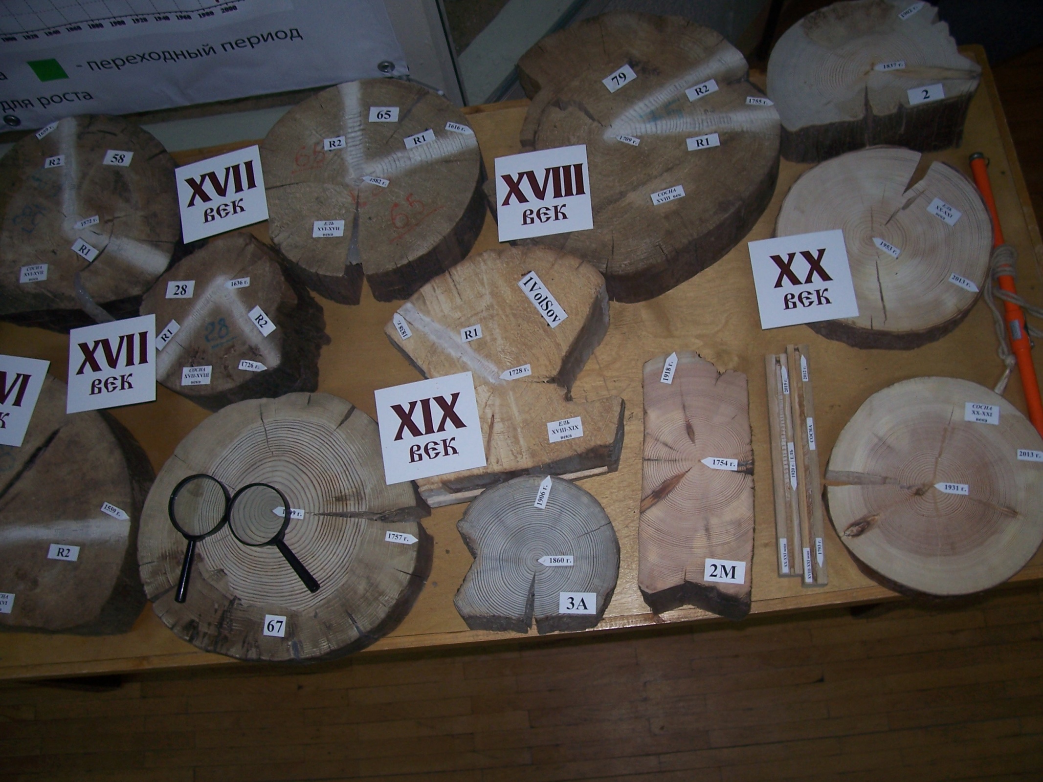 Руководитель комиссии «Дендрохронология» Вологодского областного отделения ВОО «Русское географическое общество», директор Вологодского Филиал ЦДЭ ООО «ЗДОРОВЫЙ ЛЕС» Жаворонков Юрий Михайлович и представитель школьного научного общества МОУ «СОШ №13 г. Вологды им. А.А. Завитухина», соруководитель молодежного клуба РГО на базе СОШ №13 Жаворонкова Дарина, ученица 9 класса, представили «600-летнюю дендрохронологическую летопись Вологодской земли» в графическом виде (древесно-кольцевая хронология) и в виде коллекции натурных образцов древесины XV – XXI веков.