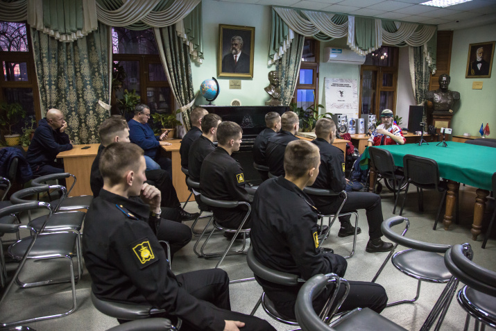 Стоит отметить, что перед мероприятием с курсантами ТОВВМУ им. С.О. Макарова пообщался исполнительный директор, член Совета ПКО РГО – ОИАК Евгений Охрименко. Он рассказал будущим офицерам о деятельности Общества и, как офицер в запасе, поделился историями своей службы на флоте.