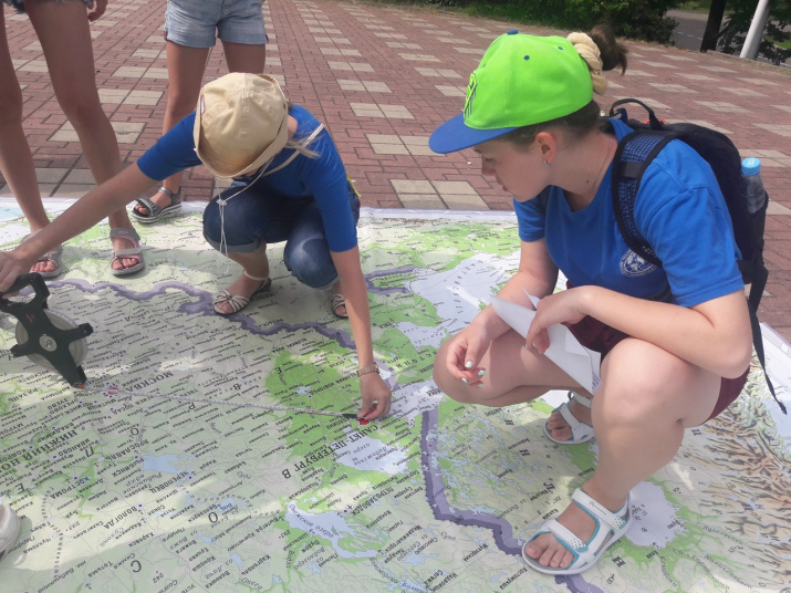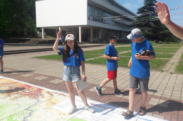 Юные географы Всероссийского детского центра «Орленок» учились читать географическую карту и путешествовать по ней с помощью условных обозначений и координат.