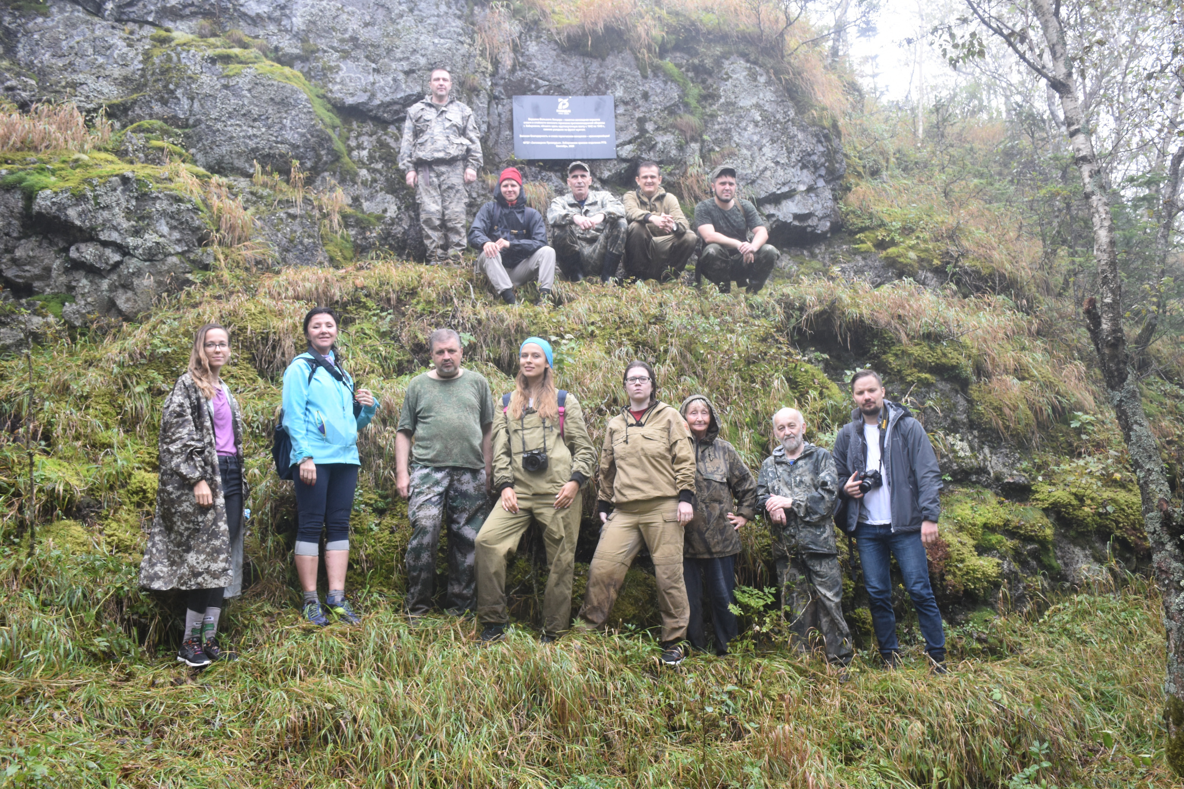 Восхождение на крутую гору совершили писатели и краеведы, журналисты, волонтеры и сотрудники «Заповедного Приамурья». Последние два километра дались особенно трудно: почти вертикальный подъем, густой туман и гудящее напряжение в ногах - давали о себе знать. Поддерживали воспоминания о том, что служившие в батальоне девушки даже бегали иногда на танцы в поселок Бычиха, спускаясь и поднимаясь по этой тропе.