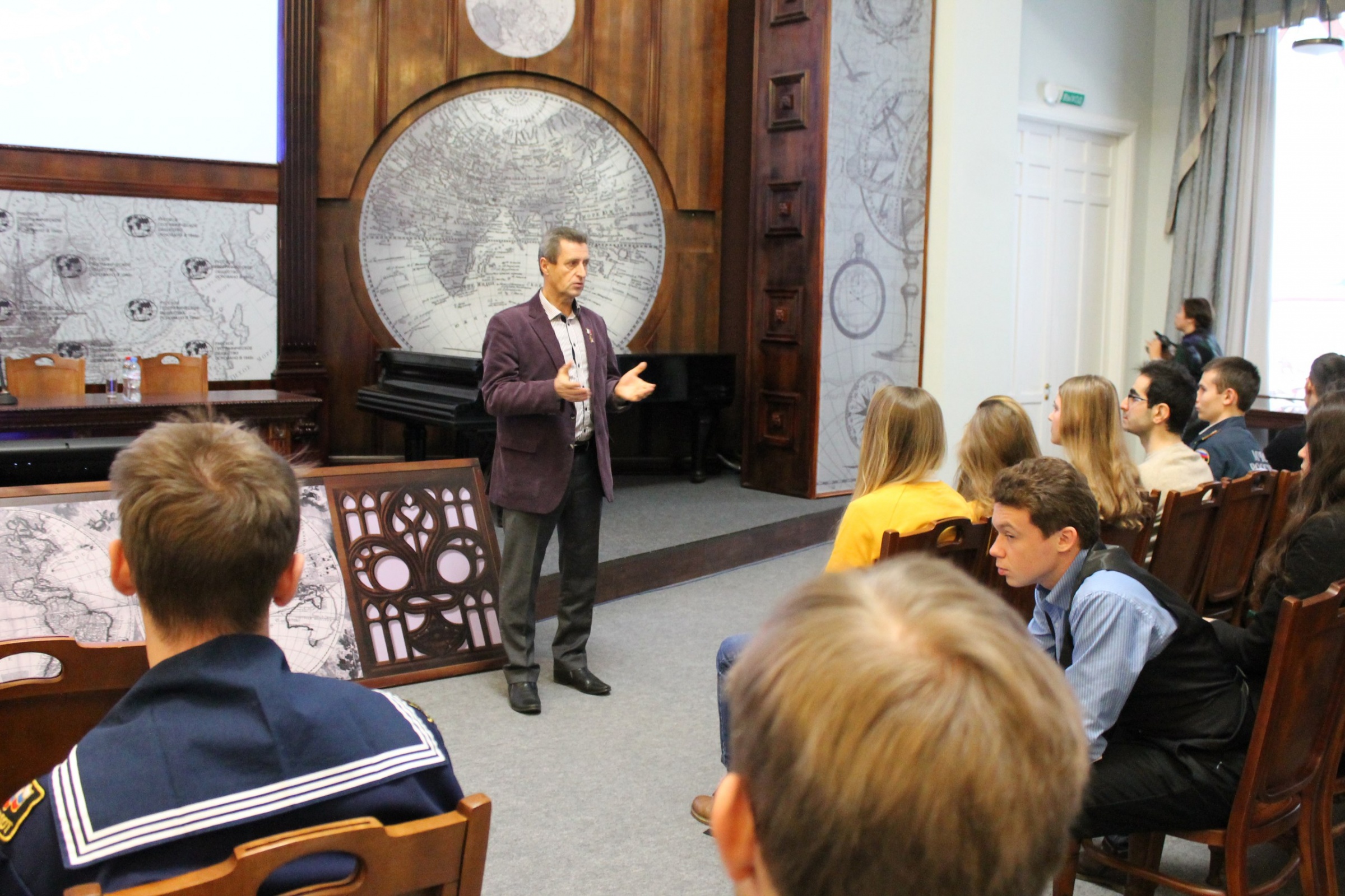 А накануне Михаил Георгиевич выступил с двухчасовой лекцией перед активом Арктического молодежного центра компетенций и рассказал о проектах по исследованию географического наследия России. Встреча прошла в штаб-квартире РГО в переулке Гривцова. Кроме того, состоялась встреча с руководителем комитета по молодежной политике и взаимодействию с общественными организациями города Санкт-Петербурга Ренатой Абдулиной, на которой обсуждались вопросы перспективного сотрудничества между Рязанским областным отделением РГО и мэрией Санкт-Петерубрга.