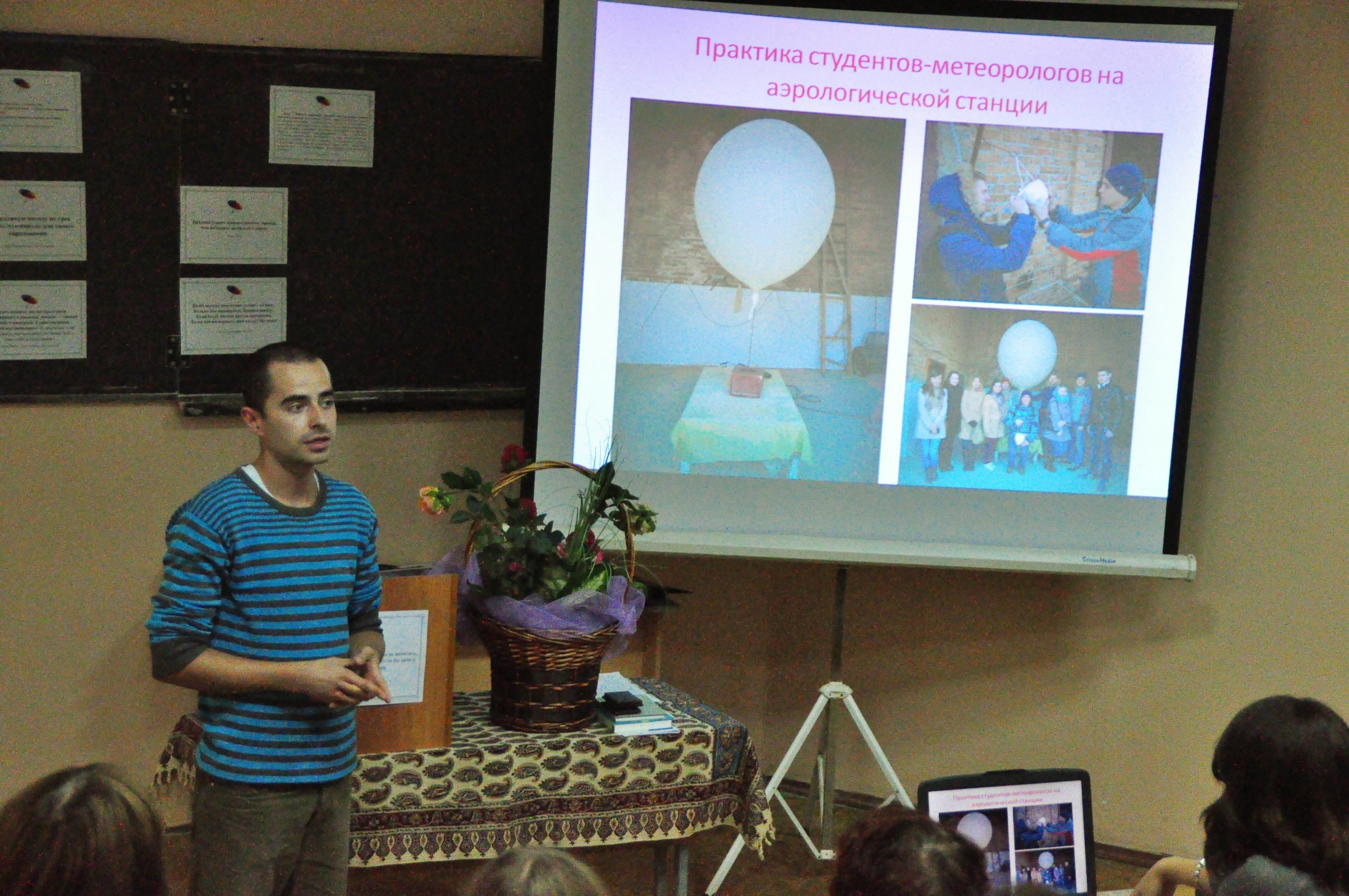 Завершающий этап конкурса - награждение дипломами и подарками победителей, состоялся 15 октября на географическом факультете. На торжественное мероприятие были приглашены все участники конкурса со своими руководителями. В целях повышения интереса к специальности метеоролога для них было рассказано об этой профессии и специфике обучения на кафедре метеорологии и климатологии. Во время мероприятия было рассказано также о дальнейших планах, в которых смогут поучаствовать школьники.