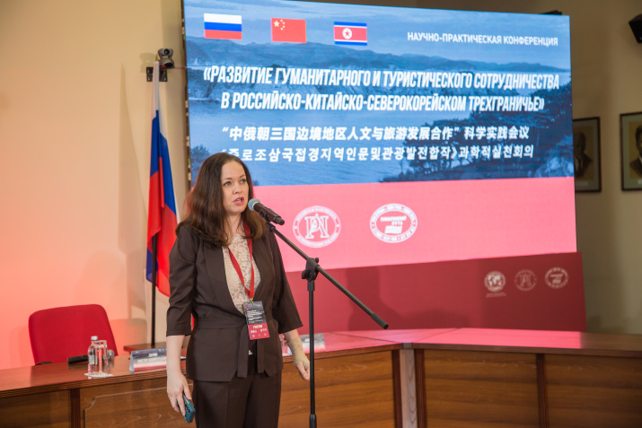 24 мая в конференц-зале Дальневосточного отделения Российской академии наук прошла научно-практическая конференция «Развитие гуманитарного и туристического сотрудничества в российско-китайско-северокорейском трехграничье». Соорганизаторами конференции выступили общественная организация «Туманганский путь», являющаяся автором инвестиционного проекта трансграничного туристического кластера «Туристско-рекреационный комплекс в Хасанском муниципальном округе РФ с осью движения по реке Туманная», который презентовал на конференции руководитель управляющей компании проекта Андрей Захаров, Приморское краевое отделение Русского географического общества – Общество изучения Амурского края и Дальневосточное отделение Российской академии наук.