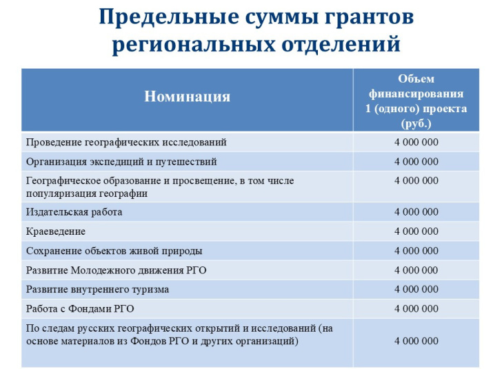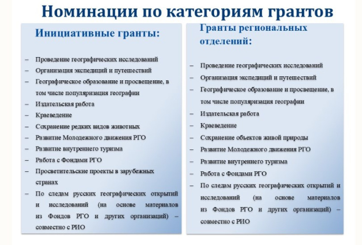 Инициативные гранты: предназначены для проектов, предложенных президентскими структурами РГО и Советом попечителей.