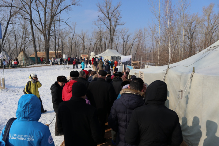 Особым интересом у красноярцев, а также участников и гостей Всемирной зимней универсиады пользуется палатка "Полярная станция", где представлены раритетные вещи – радиостанции, компасы, мебель и арктическая одежда.