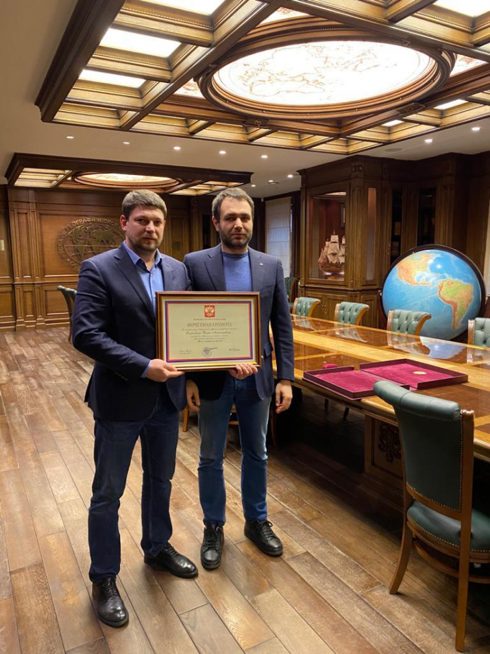 Грамоту вручил Исполнительный директор Русского географического общества Артём Манукян.