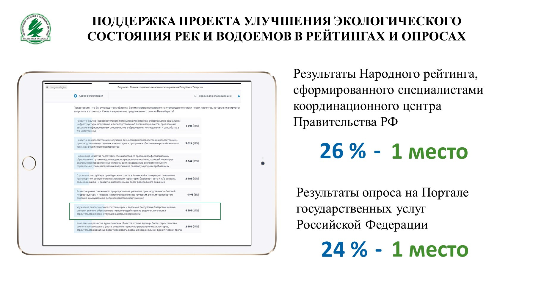 Айрат Шигапов поделился новостью, что этот проект заняли первое место в народных опросах привлекательности: в Народном рейтинге, сформированном специалистами координационного центра Правительства РФ и опросе на Портале государственных услуг РФ.