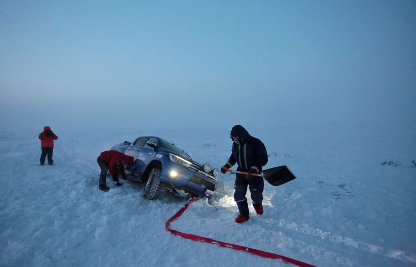 Сильные морозы играли на руку путешественникам, ведь не было метелей, но вот нескончаемое количество снега заставило участников поработать лопатами. Подробности экспедиции приводит "4x4 club".