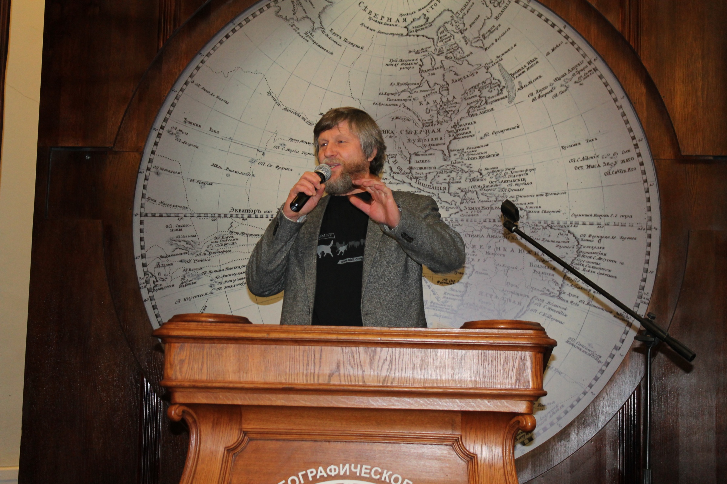 С докладом об организации современных экспедиций в Арктике выступил руководитель Полярной Комиссии Санкт-Петербургского городского отделения РГО, ученый, путешественник, писатель и поэт Виктор Боярский.