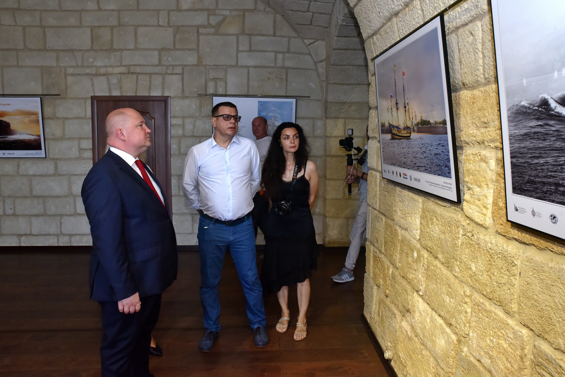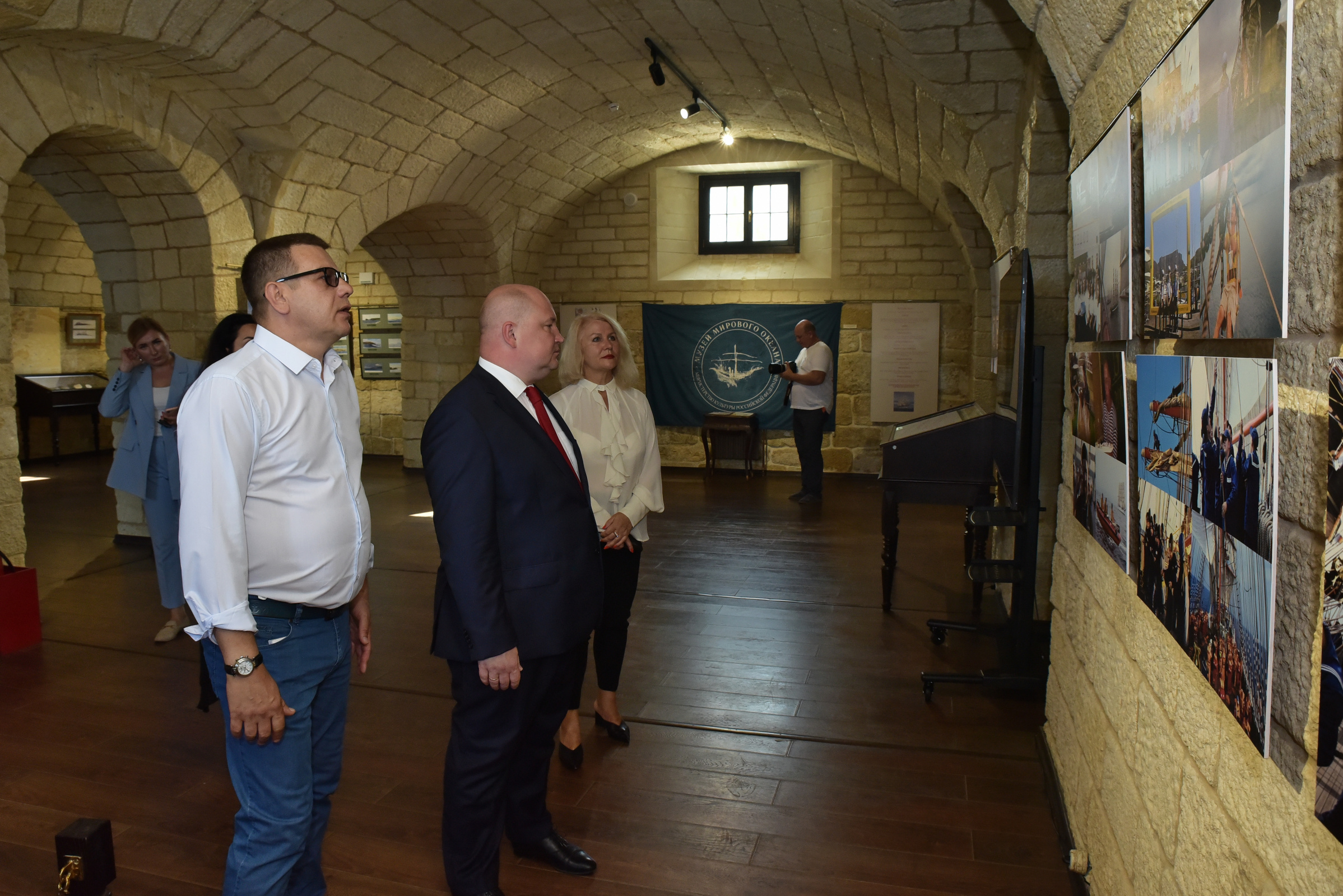 Далее Владимир Воробьёв познакомил гостей с двумя новыми экспозициями выставочного комплекса, открытыми 18 августа - в День Русского географического общества, одна из которых посвящена фотопортретам кораблей Военно-морского флота России и парусных судов.