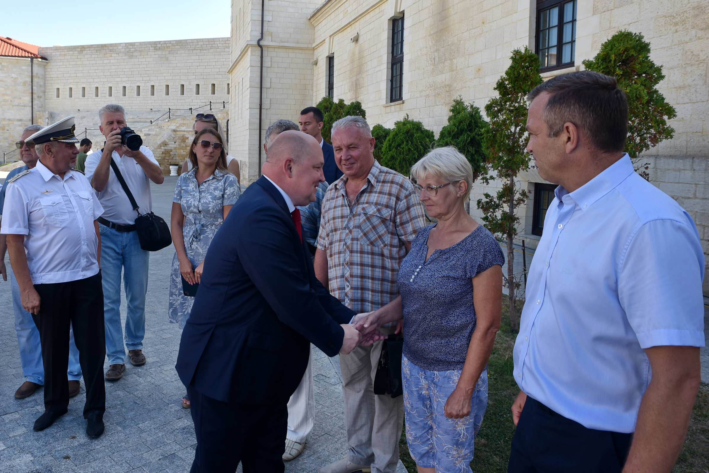 В торжественной церемонии поднятия флага принял участие Губернатор Севастополя Михаил Развожаев, а также глава Департамента культуры Ирина Романец, председатель Севастопольского городского отделения Русского географического общества Владимир Воробьёв, представители ветеранских организаций города, члены Севастопольского морского собрания.