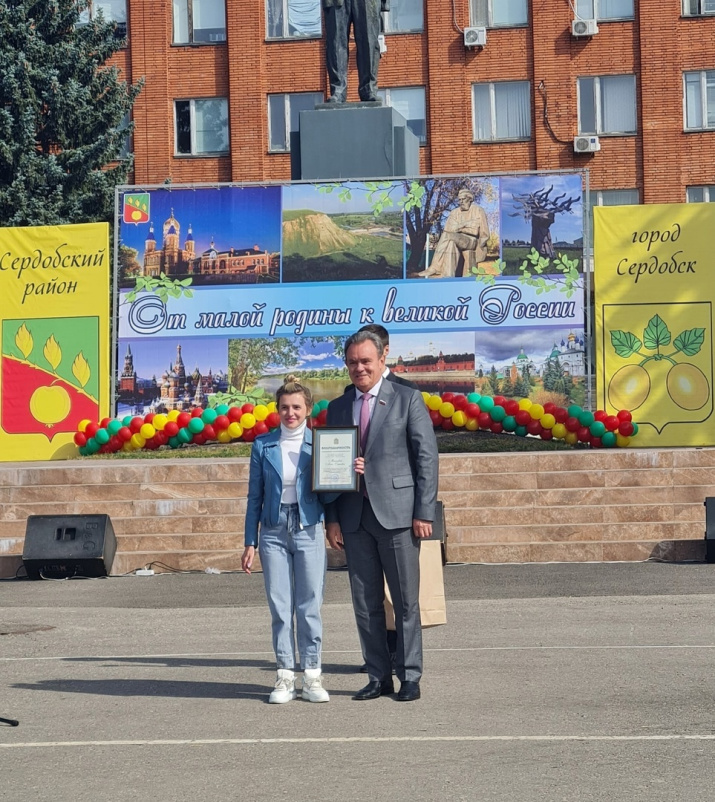 Одним из номеров праздника стала презентация общественных организаций Сердобского района, в числе которых был представлен и МК РГО города Сердобска. Во время презентации девушки из многопрофильного техникума Ирина Милютина, Ксения Дергунова и Ксения Хухлаева с гордостью держали флаги России и клуба. Активистка молклуба Анна Моисеева была награждена благодарностью от Законодательного Собрания Пензенской области за свою общественную деятельность.