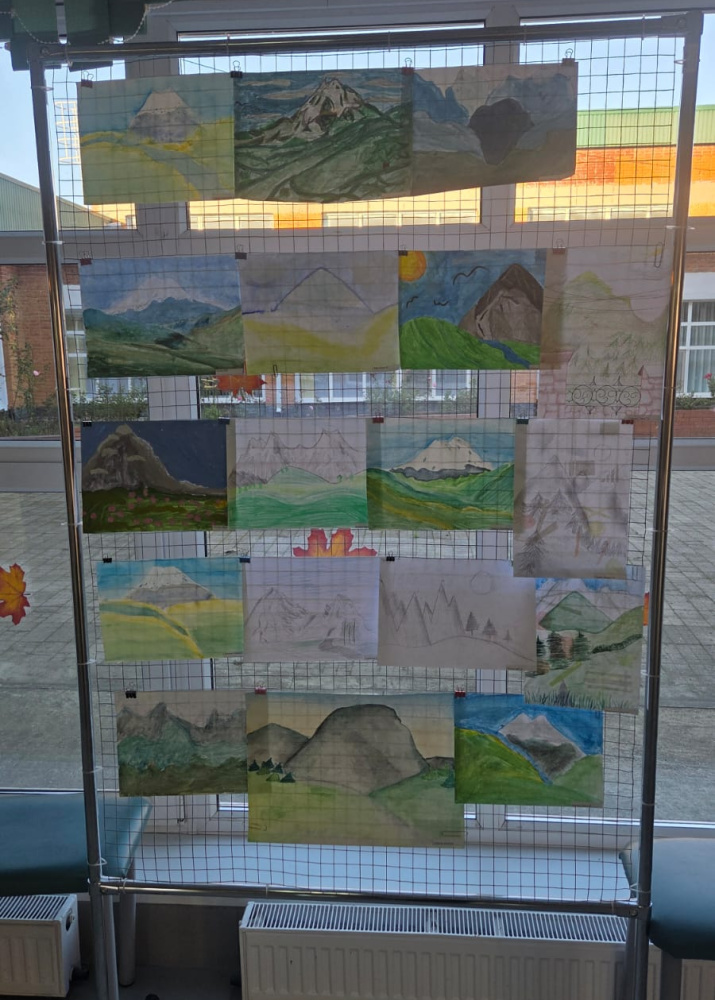 В своих работах школьники изобразили горные пейзажи и символические «портреты» гор, передав их силу, красоту и характер. Каждый рисунок отражает личное восприятие автора и уважение к природе родного края.
