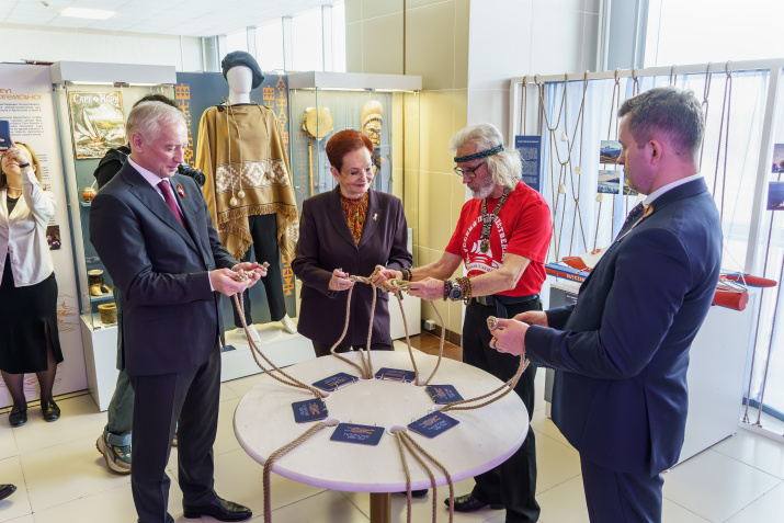 На официальной церемонии томский кругосветчик Евгений Ковалевский провел сокращенную версию экскурсии по уникальным экспонатам, привезенным им и Юлией Калюжной из 32 стран мира.