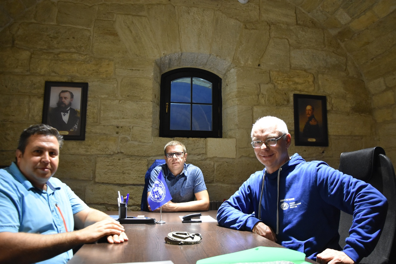 Помимо участия в конференции руководитель Тульского областного отделения Общества встретился с председателем Севастопольского отделения РГО Владимиром Воробьевым. В ходе встречи, проходившей при участии научного руководителя подводно-археологической экспедиции на мысе Тарханкут Виктора Лебединского в Южной штаб-квартире РГО – Константиновской батарее – обсуждались вопросы сотрудничества и реализации совместных проектов.