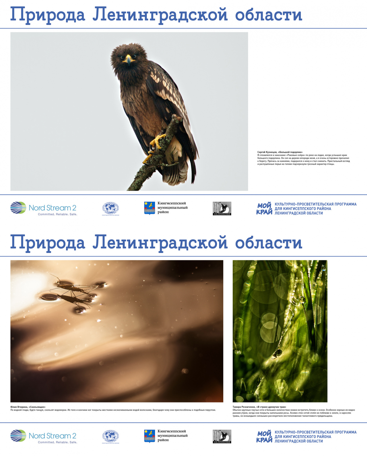 Проведение выставки "Природа Ленинградской области" в рамках проекта "Мой край" реализуется по инициативе и при финансовой поддержке компании Nord Stream 2 AG, разработчика морского газопровода «Северный поток -2», в соответствии со стратегией Экологических и социальных инициатив компании. Выставка состоялась благодаря помощи и содействию Администрации МО "Кингисеппский муниципальный район" Ленинградской области.