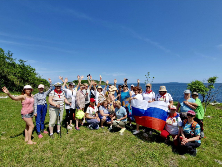 14 июня к участникам Фестиваля присоединилась ещё одна группа, во главе с Председателем Совета Лиги ходьбы Женьшень, членом ПКО РГО – ОИАК Олегом Матвеевичем Косолаповым, которая прибыла на катере из Владивостока.