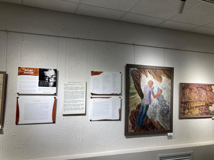 Красноярское краевое отделение РГО представило на выставку картины и планшеты со стихами Владимира Капелько из своих музейных фондов. Здесь можно увидеть и уникальные материалы, переданные в 2022 году в дар Красноярскому краевому отделению РГО семьёй красноярцев Прилепских для формирования музейной коллекции. Одним из особо ценных экспонатов является картина с изображением красноярского учёного Владимира Капелько за работой. Художник - Виктор Иванович Прилепский.