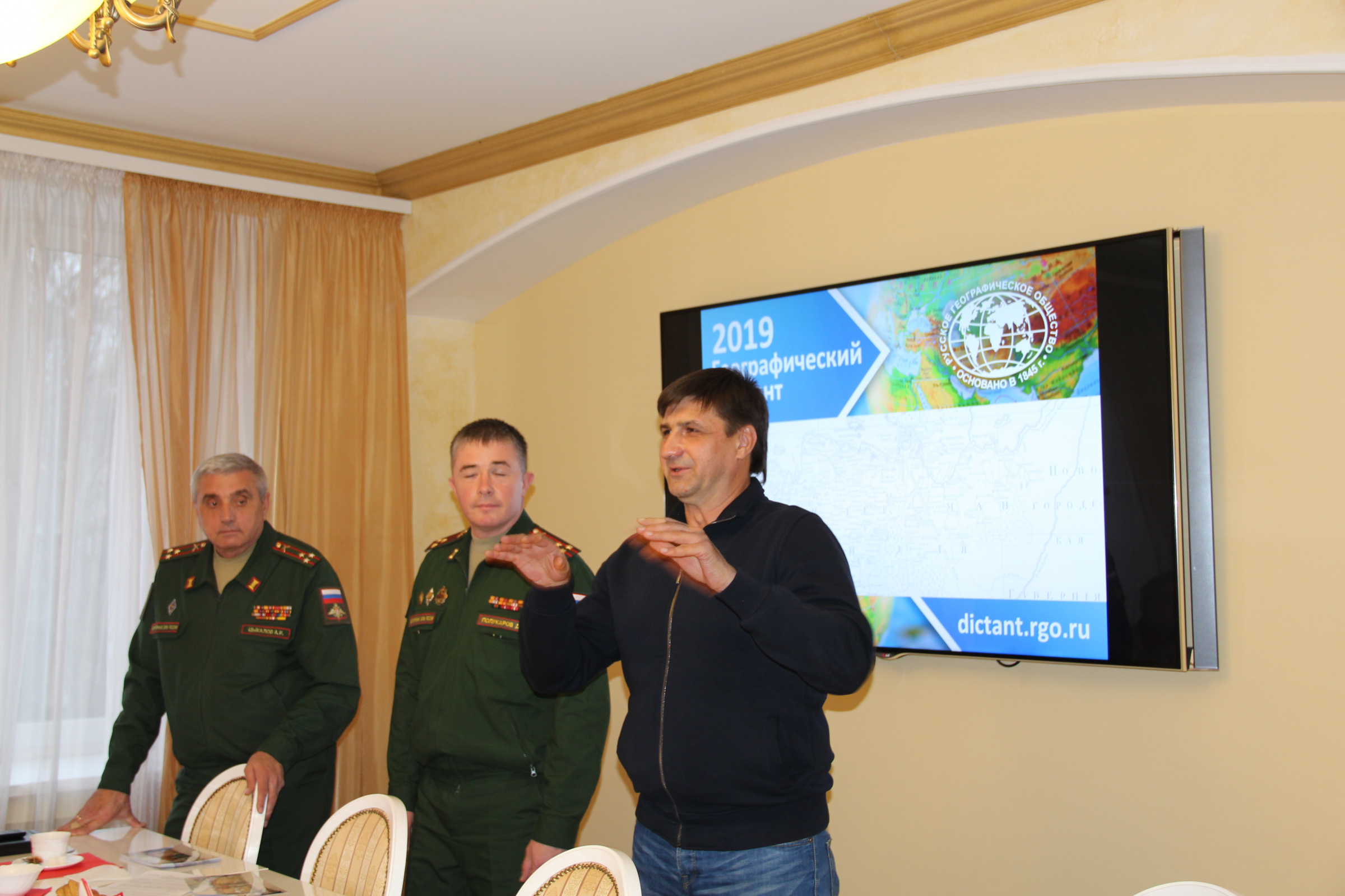 Вместе с генерал-лейтенантом Николаем Паршиным, в качестве почетных гостей на образовательную площадку артинститута для проведения Международного географического диктанта были также приглашены: Игорь Пантюшов – председатель Пензенского областного отделения РГО, Ольга Ильина – председатель Пензенского городского отделения РГО и Евгений Устинов –известный путешественник, активный член РГО. Всех этих людей объединяет любовь к познанию географии родной страны, глубокие знания в данной области, которыми они и поделились с участниками географического диктанта в период подготовки к его написанию.