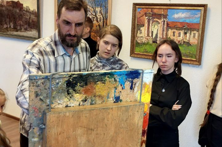 Художники-путешественники Андрей и Елена Вилковы рассказали о своих незабываемых приключениях и вдохновении, которое они находят в разных уголках мира. В итоге, они провели для собравшихся мастер-класс по написанию этюда, чтобы юные художники сами могли почувствовать себя на самом настоящем пленэре. Андрей Вилков подарил созданную им работу художественной школе.