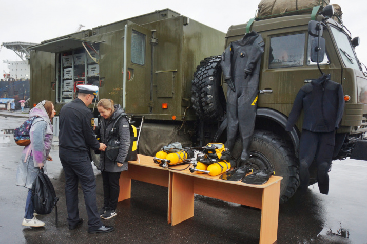 Для посетителей, не побоявшихся непрерывного дождя, накрывшего в этот день Мурманск, подготовили насыщенную программу. На берегу Кольского залива, на площадке у Морского вокзала были разбиты современные палатки, в которых демонстрировались фильмы и фотографии РГО, проходили лекции и встречи с участниками экспедиций. Каждый желающий мог примерить на себя водолазное снаряжение, побывать внутри автомобилей, используемых в совместных экспедициях РГО и 12 ГУ МО, а также узнать о специальном оборудовании, размещенном в этих автомобилях.