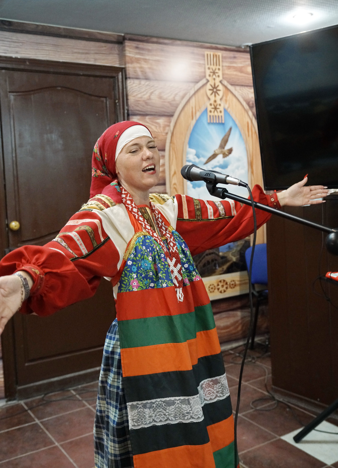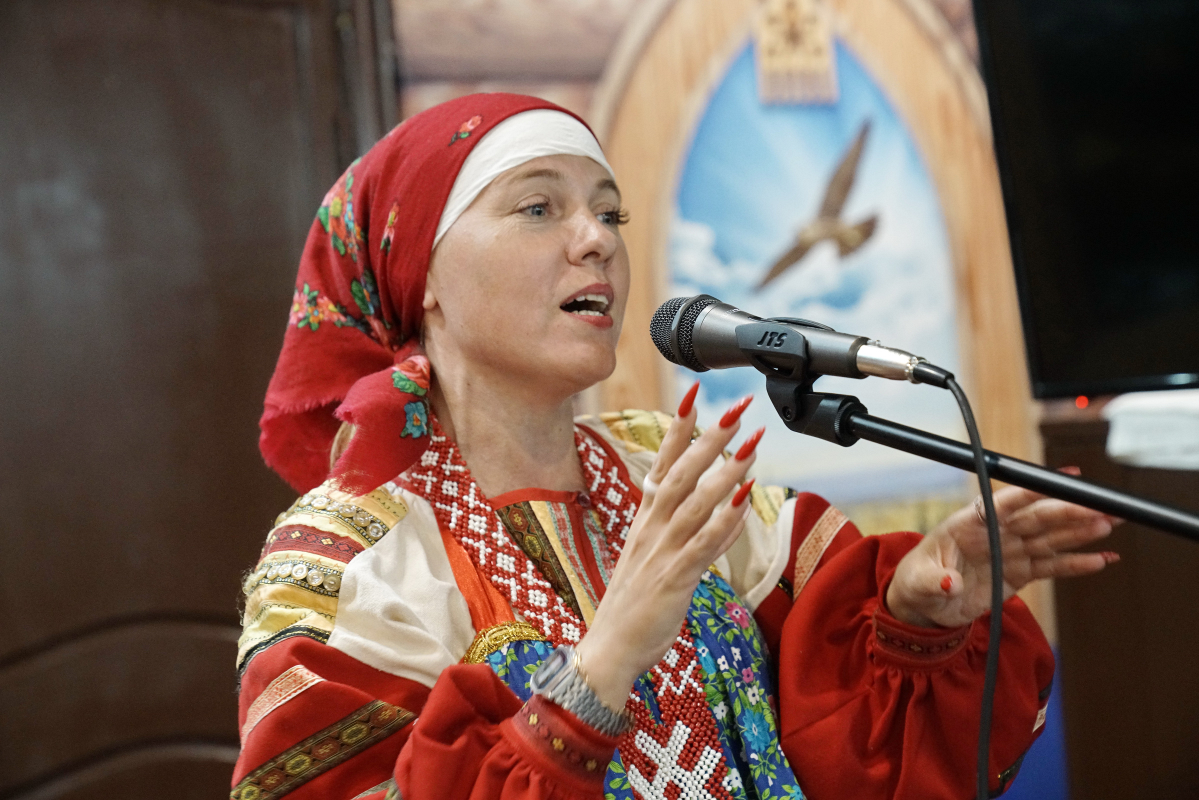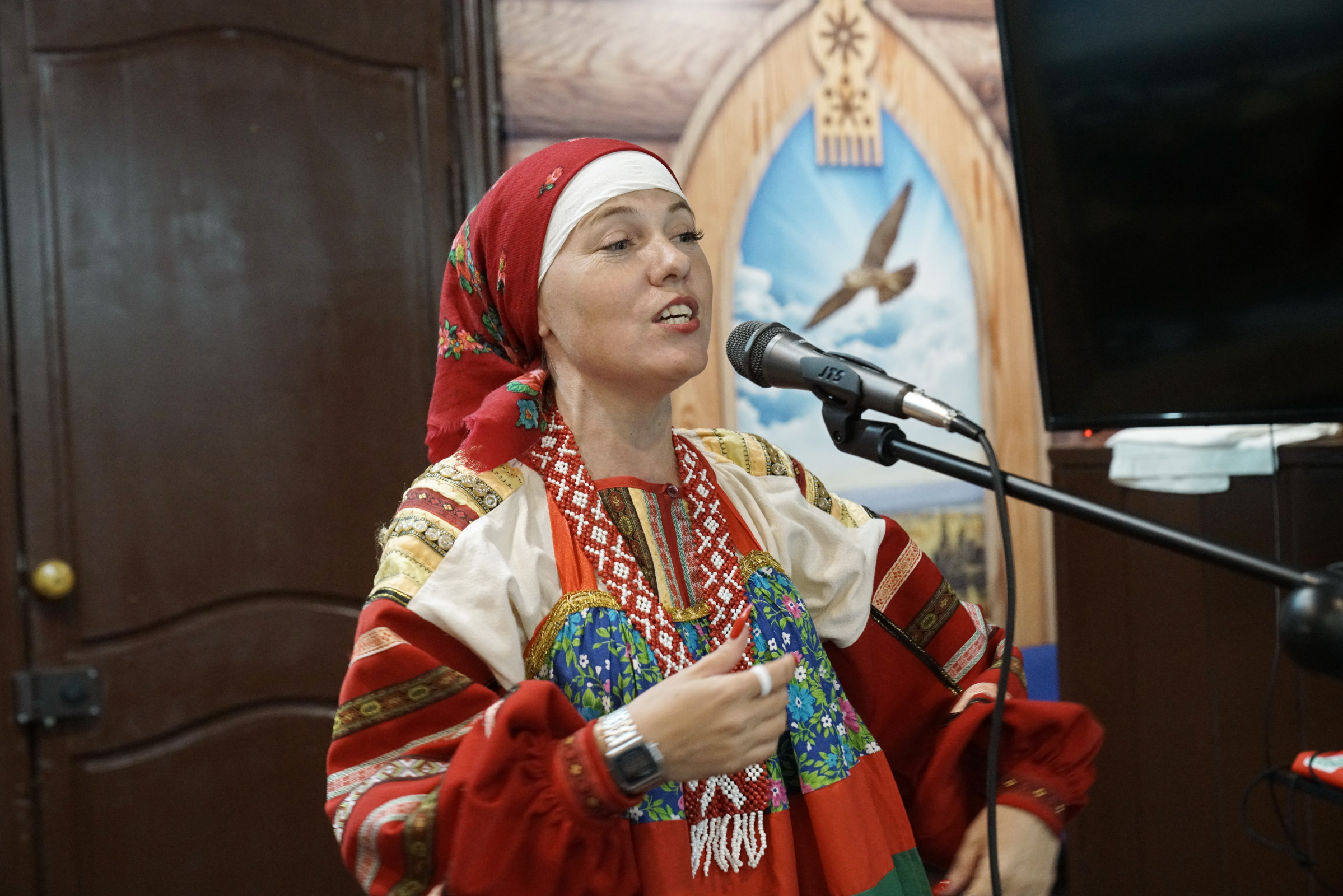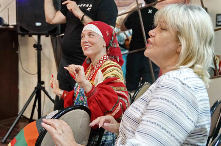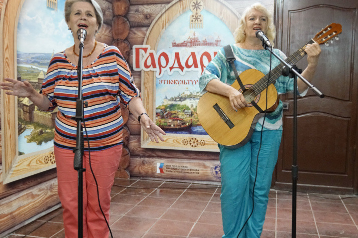 После торжественной части программы участницы этнокультурного центра «Гардарика» Анна Минеева, Евгения Пискунова и Любовь Киреева подготовили для участников марафона концертную программу, состоящую из народных и военных песен.