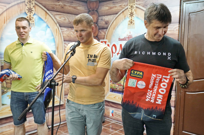 Основатель марафона в Пензе Владимир Басалаев поблагодарил от имени участников марафона Пензенское областное отделение Русского географического общества и вручил его руководителю экземпляр собственного печатного издания, посвящённого велопутешествию через всю Россию до Тихого океана.