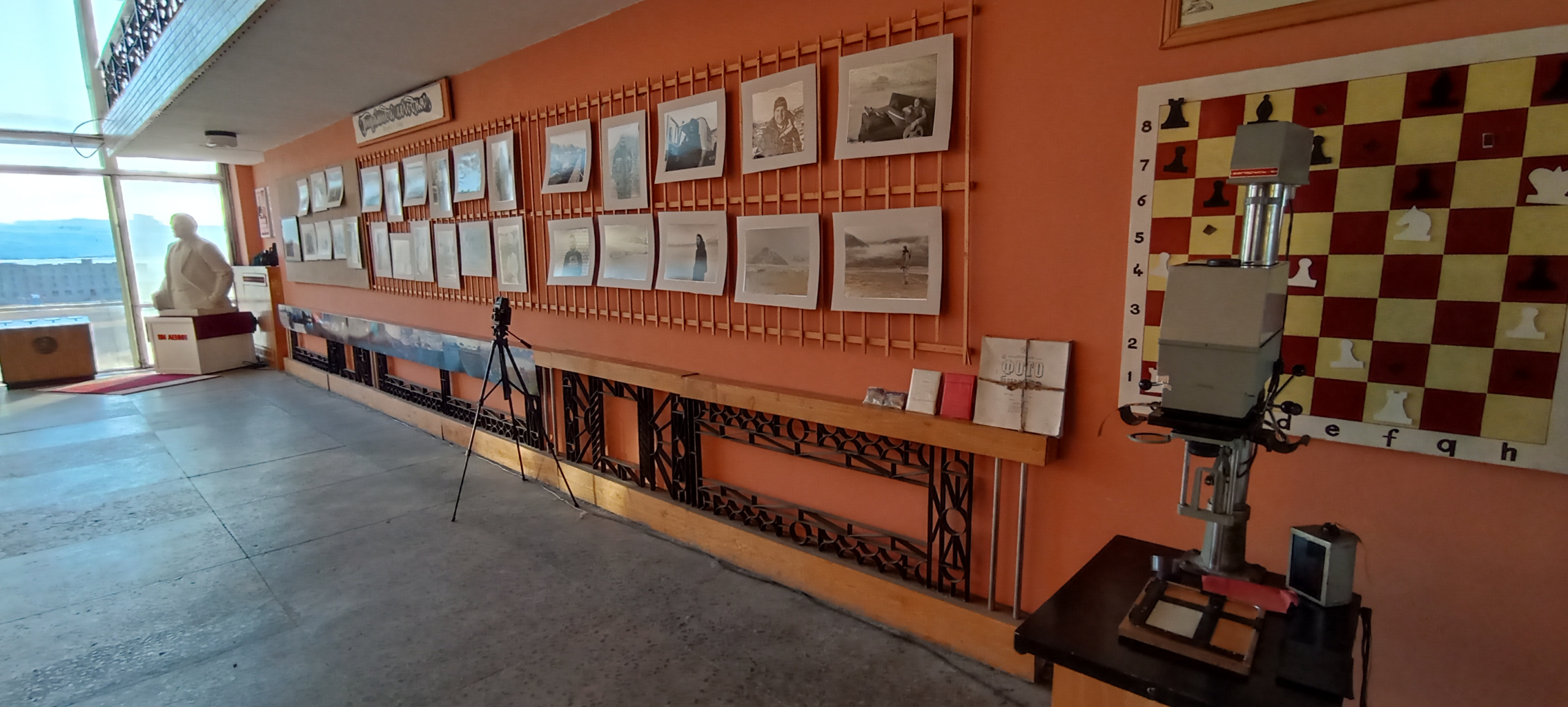 — В своей серии фотографий я сделал акцент на людях, живущих и работающих в Пирамиде в наше время, благодаря которым посёлок продолжает жить и принимать туристов со всего мира. В кадр попали люди разных возрастов и профессий, которые обычно остаются за кадром у приезжих папарацци, они делают свою работу. Это строители, повара, водители, работники туризма. На фотографиях также люди из Баренцбурга, приезжающие в командировки, туристы, белые медведи, олени и песцы... В этом году я вновь вернулся в Пирамиду. Стояло много задач - обслуживание плёночной киноаппаратуры в самом северном кинотеатре, систематизация фильмохранилища, обучение молодого киномеханика, который сейчас показывает фильмы в Пирамиде. Все снимки сделаны на плёнку, так как я фанат пленки и считаю, что именно она максимально живо и колоритно передает фактуру предметов и атмосферу места съемки. Цветные фотографии сделаны на слайдовой широкой плёнке, а черно-белые на обычную негативную черно-белую фотопленку, а затем вручную отпечатаны на фотоувеличителе классическим способом в тёмной комнате при красном свете, как это было в советские времена. Кстати, многие кадры проявлены и напечатаны именно здесь, в Пирамиде, где действовала самая северная проявочная лаборатория в мире. На выставке представлен советский фотоувеличитель «Беларусь-5», фотобумага, проявочные бачки, которые я использовал в своей работе. Они были найдены в разных заброшенных местах Пирамиды,— делится историей создания выставки Станислав Шуберт.