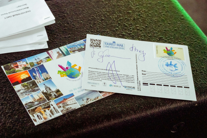 Важным событием третьего дня работы Всероссийской премии «Туристические города» стало проведение торжественной церемонии спецгашения почтовой карточки в честь Всероссийской премии «Туристические города» и открытие первой в мире «Туристической почты», в которой приняли участие подписанты и почётные гости: Вадим Кстенин, глава городского округа город Воронеж; Екатерина Шрамко, вице-президент НАИТО, директор ТИЦ Воронежа; Людмила Бородина, заместитель главы администрации городского округа город Воронеж; Геннадий Шаталов, председатель Правления ФРОС Region PR, председатель Попечительского совета Всероссийской премии «Туристические города», лауреат премии Правительства РФ в области туризма и исследователь-путешественник, автор и руководитель Всероссийского проекта «POSTVENTURE & Почтовое приключение» Валерий Сушков.
