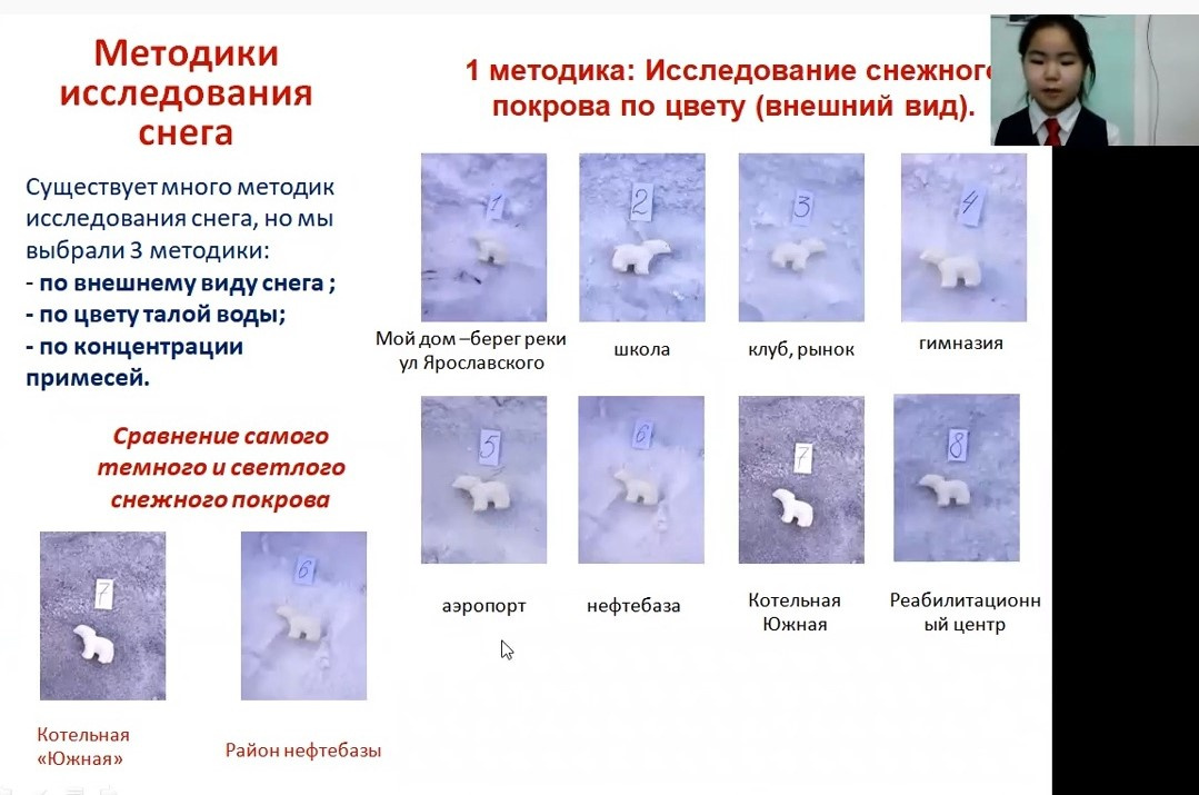 Пытаясь найти пути решения экологических проблем, участники конкурса всерьез обеспокоены загрязнением озер (Винокурова Самаана, Оймяконский улус) и снега (Тимофеева Анастасия, г. Среднеколымск) в отдельных городах и улусах Якутии, изменением арктического климата (Хасянова Агдалия г. Новый Уренгой), деградацией почв (Ганичев Филипп г. Киров), стремительным таянием ледников Арктики и многими другими проблемами.