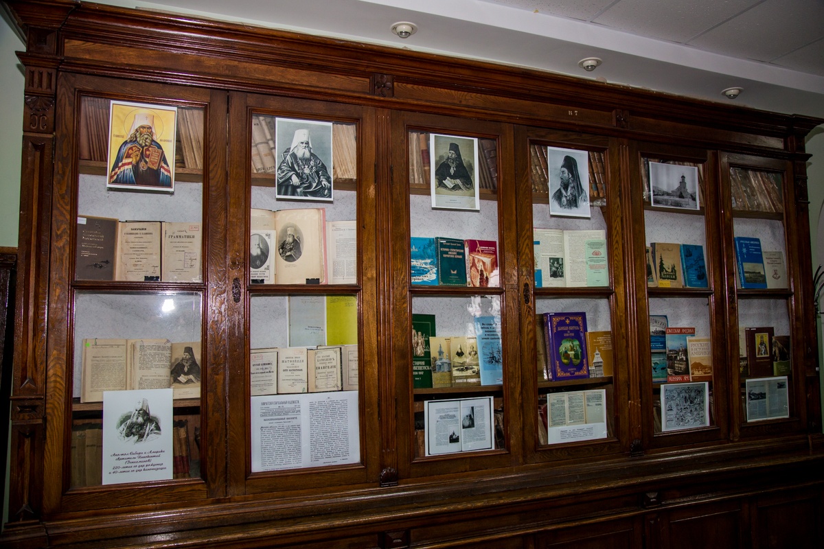Книжные богатства хранятся в фондах библиотеки Общества изучения Амурского края. Необъятен мир книг, и у каждой книги - своя судьба. Когда речь заходит об уникальных экземплярах, среди тысяч книг выделяются прижизненные издания Иннокентия Вениаминова (в миру Иван Евсеевич Попов - Вениаминов, 26 августа 1797, Иркутская губерния – 31 марта 1879, Москва), его книги - свидетели эпохи и являются бесценными документами его жизни и деятельности. За свои научные достижения священник Вениаминов в 1846 г. избран членом-сотрудником, а в 1869 - Почетным членом Императорского Русского Географического общества, в 1868 г. - почетным членом Московского университета.