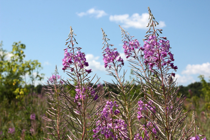 Кипрей узколистный (Epilobium angustifolium). Этот вид относится к обширному семейству кипрейных, включающих более 20 родов и около 600 видов. Кипрей узколистный в Пензенской области распространен практически повсеместно. Здесь он приурочен к минерализованным почвам и гарям. Распространен кипрей на склонах со смытыми почвами, преимущественно в местах, где плодородный слой был смыт потоками воды в результате действия сильных ливневых дождей. Произрастает он обширными куртинами по лугам, страдающим от регулярных весенне-осенних палов. Также его можно встретить на землях с антропогенно нарушенным почвенным покровом – на обочинах дорог, в местах стихийных свалок и т.п.