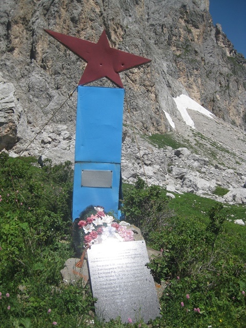 Настойчивый хор местной птичьей братии разбудил туристов на рассвете. В туманной дымке, пробиваясь из-за Армянского перевала, солнечные лучи осветили вершину Фишта. Пора в путь. Тропа на Белореченский перевал берет свое начало у памятного мемориала погибшим туристам и альпинистам.